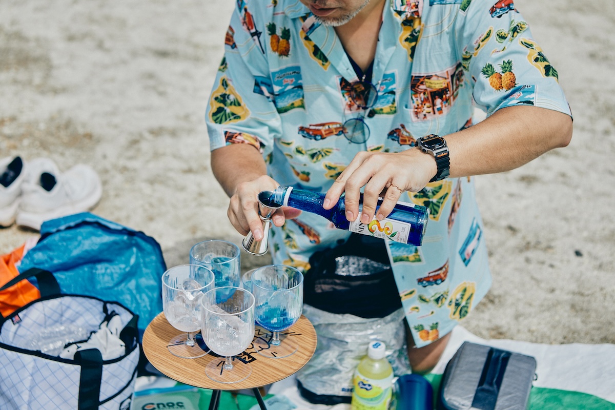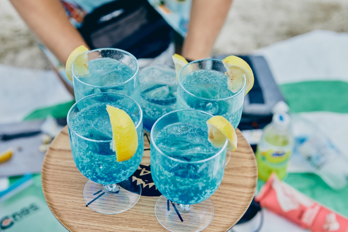 そして辻井さんがビーチを楽しむアイテムとして持ち込んだのが、ノンアルコールカクテルのブルーハワイ。浮き輪といい、用意周到すぎ!