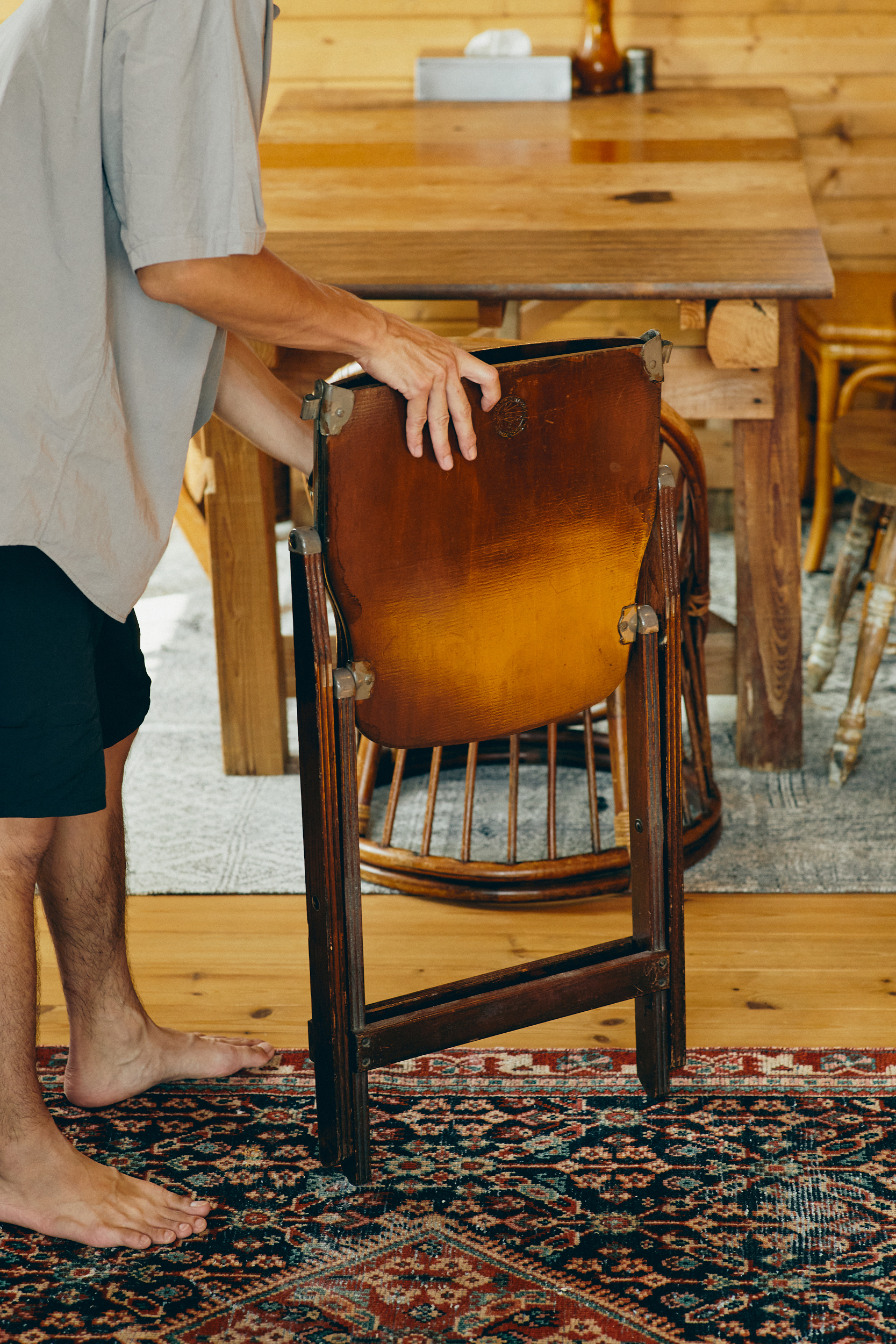 ふたりがよく足を運ぶのは、茨城県にある『バックヤード』というお店。「ダイニングテーブルは、ヴィンテージの家具をリメイクしたものを選びました。イスはバラバラのデザインにしたくて、いろんな古道具屋から選んだり、妻の親戚宅からもらった藤のイスも使っています」。