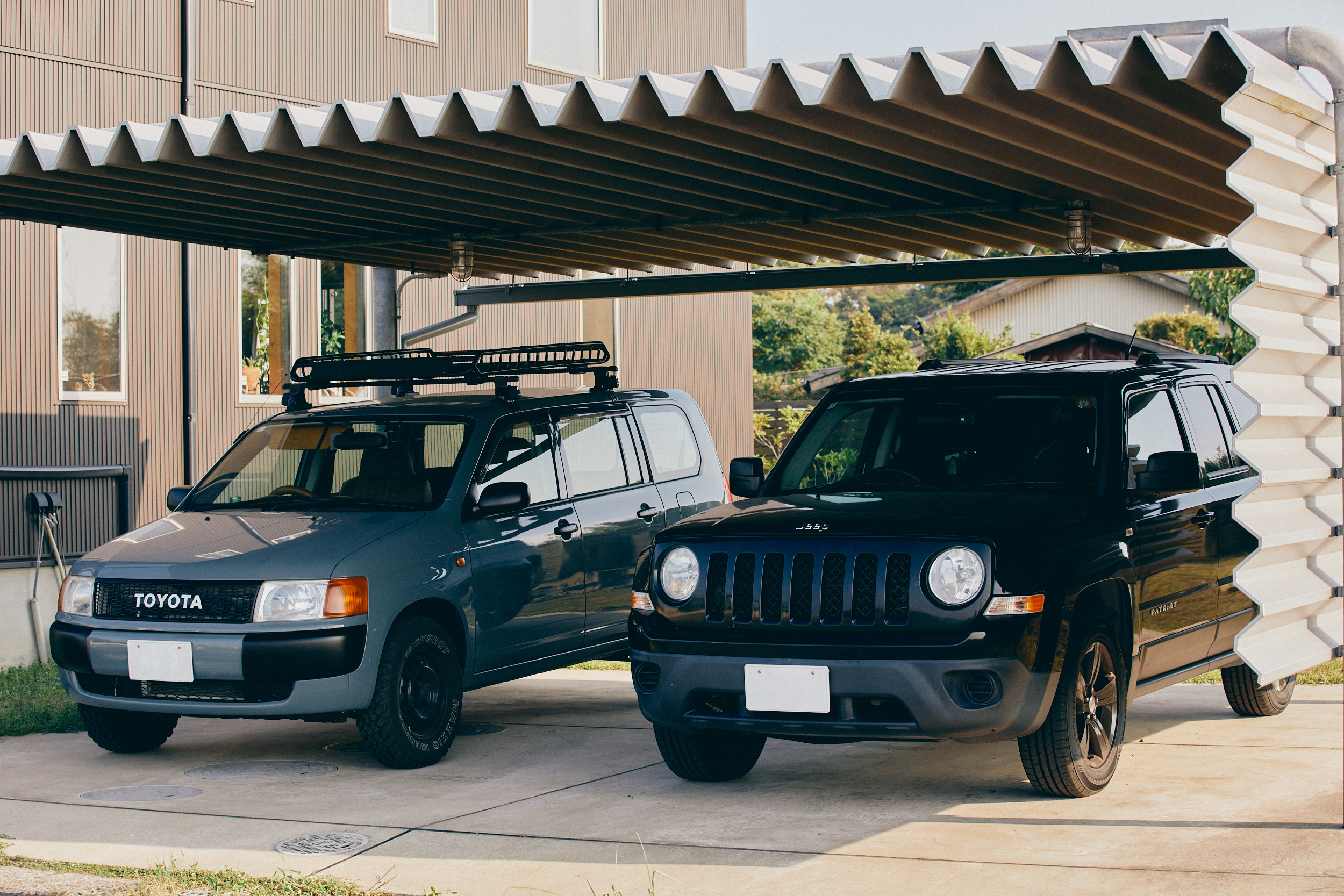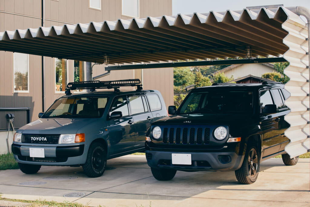 また、クルマにもこだわってアウトドアスタイルなモデルをチョイス。カーポートも設置し、「遠出する際はジープのパトリオットに、出勤や日常の足としてトヨタのプロボックスが活躍しています」。