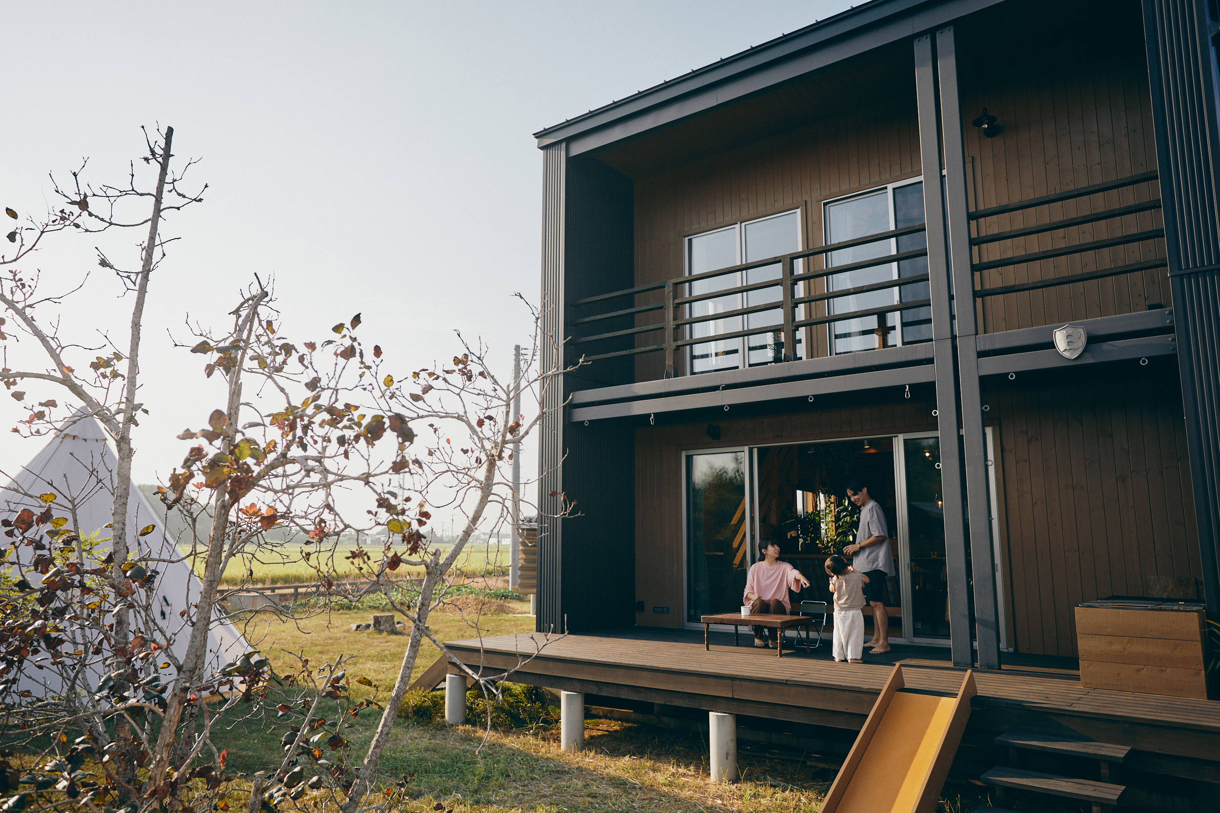 夫婦ともにキャンプ好きという我妻さん夫婦。結婚後すぐ「いつかジブンだけの家が欲しかった」という隼さんから一軒家の購入を相談。すぐ土地探しがスタートしました。運良くさまざまな条件が合い、我妻さんの実家近くにある150坪の広い土地を見つけたふたり。目の前に田園風景が広がり、突き当りの立地も気に入ったそう。