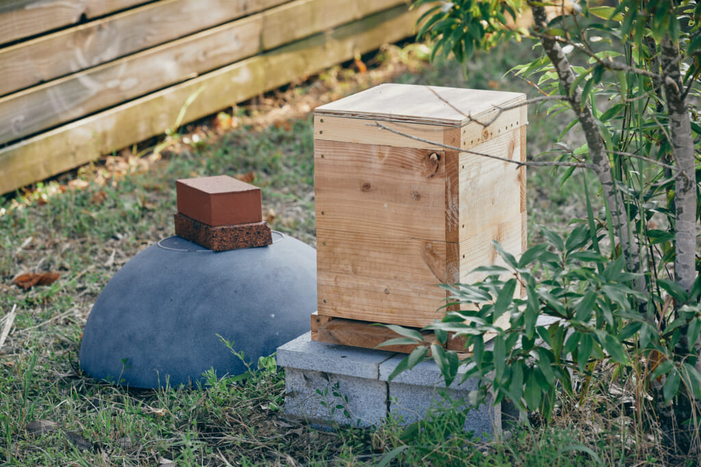ほかにも玄関横のアプローチに使った枕木や照明、野鳥の餌箱など広い庭をいかし、自然を楽しめるような工夫もチラホラ。「直近で作ったものは養蜂のための巣箱。内側に蜜蝋を塗っているので、来年の春に住み着いてくれるといいなと思っています」。