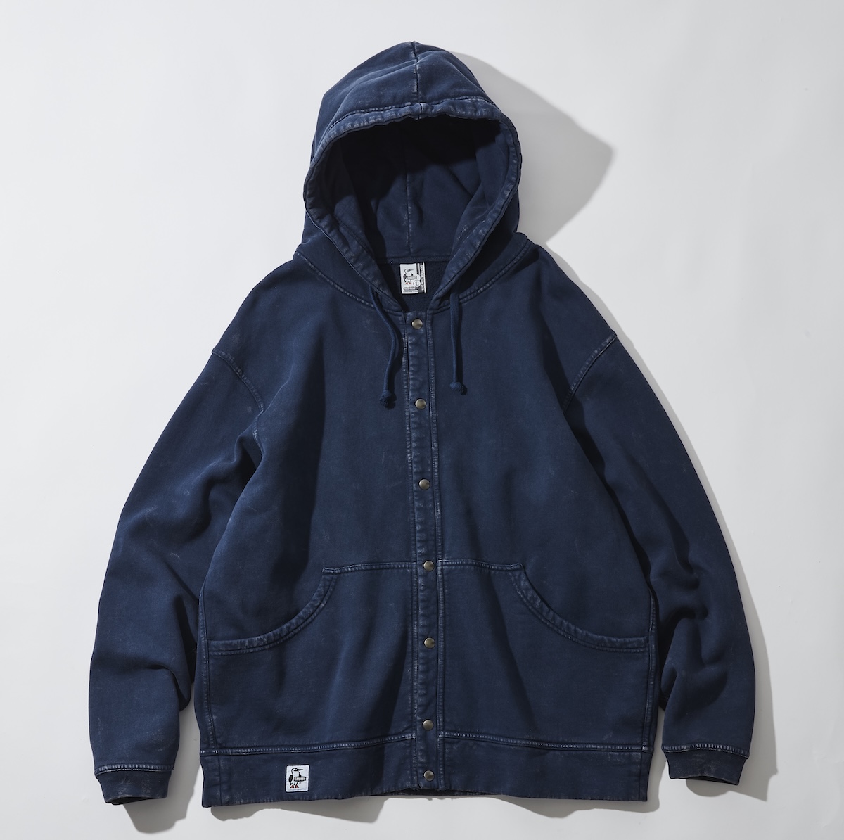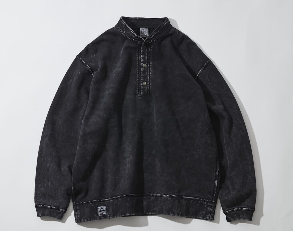 チャムスのアイコン的ウエアのハリケーントップも、ピグメントダイでさらにヴィンテージ感をプラス。ブラックのボディでも、たっぷりと風合いが出ている。