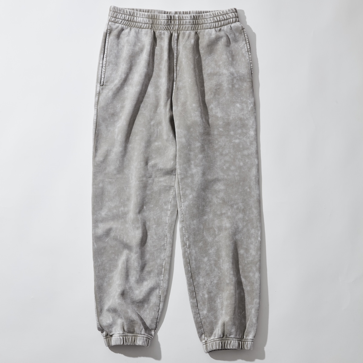 プレーンなモデルを穿くとラフに見えがちなスウェットパンツも、ピグメントダイ加工を施すことで存在感のある1本に。