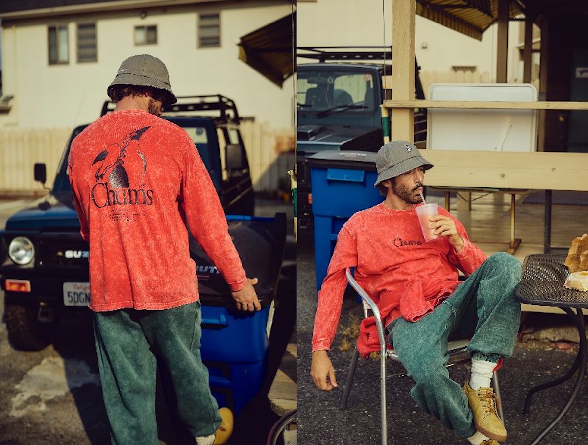 ちなみにこちらの1枚は、バックスタイルも印象的。旧ロゴと共にリアルなブービーバードのグラフィックがプリントされ、チャムスの新たな魅力を引き出している。