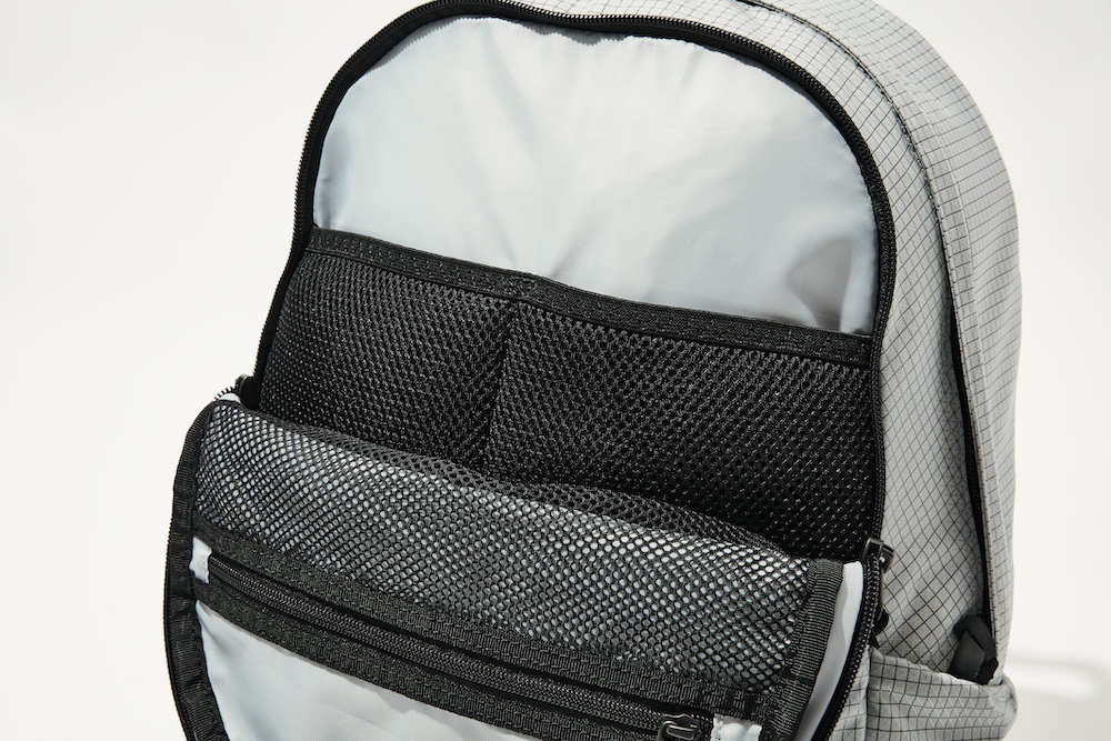 2種の異なる素材を格子状に織り込んだ高機能素材や3Dメッシュを使用し、アウトドアシーンにも対応できる高スペック仕様となっている。