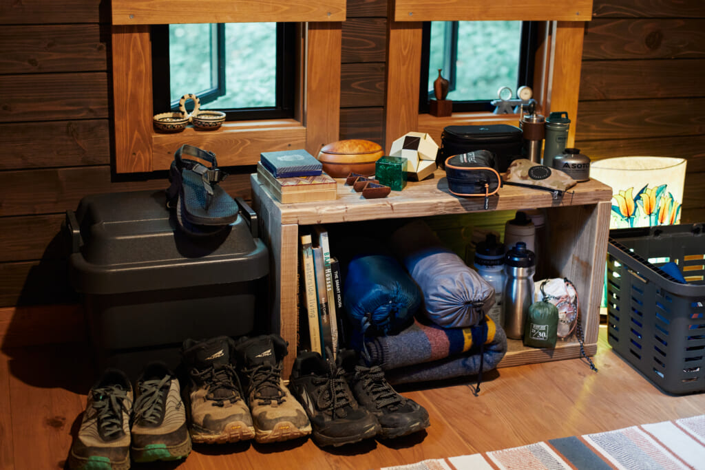 また、仕切りのない空間が生み出す余白には、季節外のギアを飾りながら収納したいとか。栖ログのような自由度の高い作りなら、コンパクトな空間でも可能性は無限大だ。