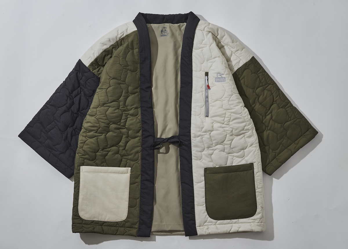 半纏は脇にマチがなく、少し丈が短めに作られた独自のシルエットが特徴。そんななか、ブービーステッチの半纏は、和洋折衷に遊びゴコロもプラスされたチャムスならではのアイテム。街でも違和感なく羽織れるし、ポケットもあるので、小物やスマホも収納できる。