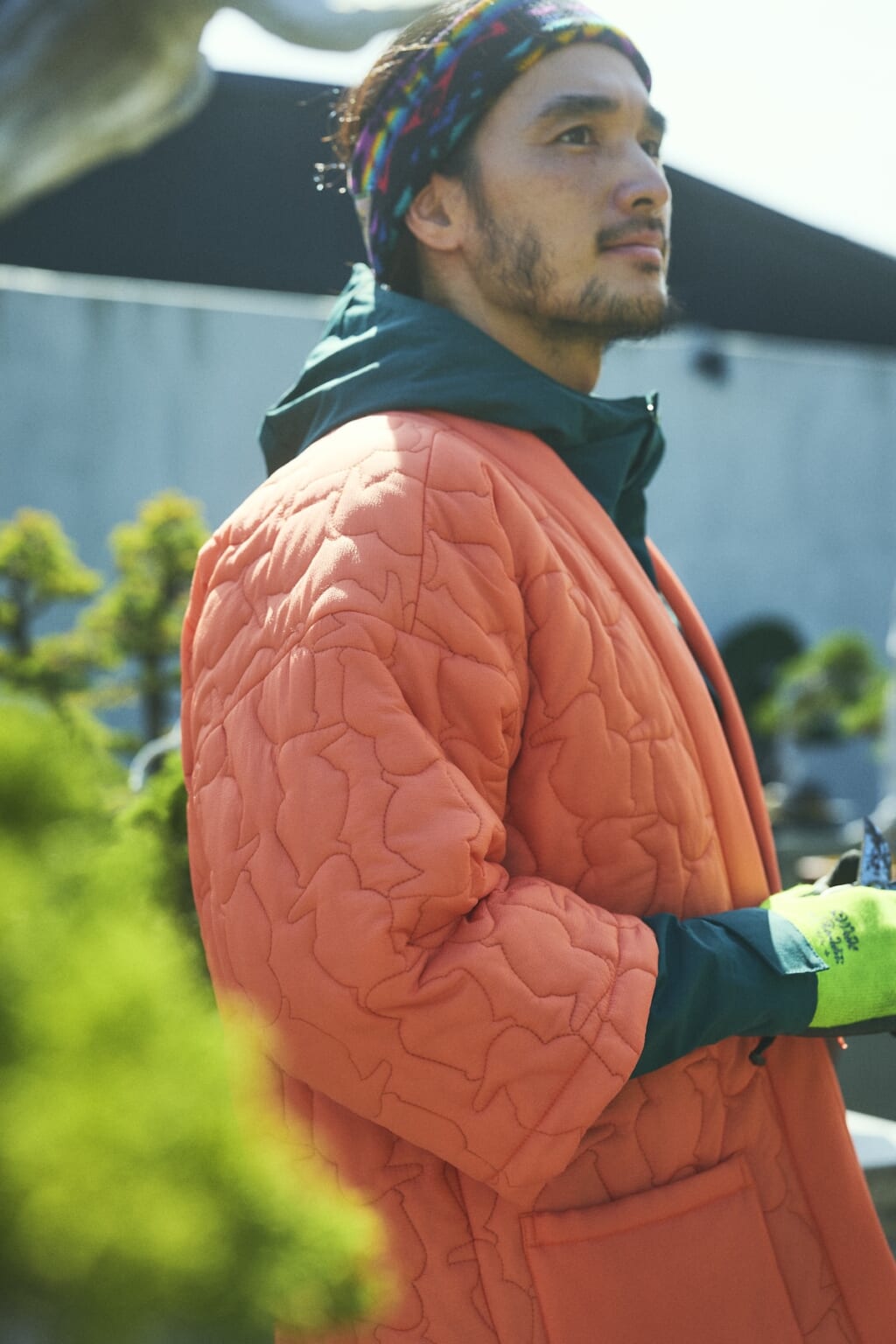 日本伝統の防寒ウエアといえば半纏。そんな和テイストにあふれたアイテムも、ブービーステッチのキルティング柄で仕上げると、ほどよくポップで存在感のあるアウターに。