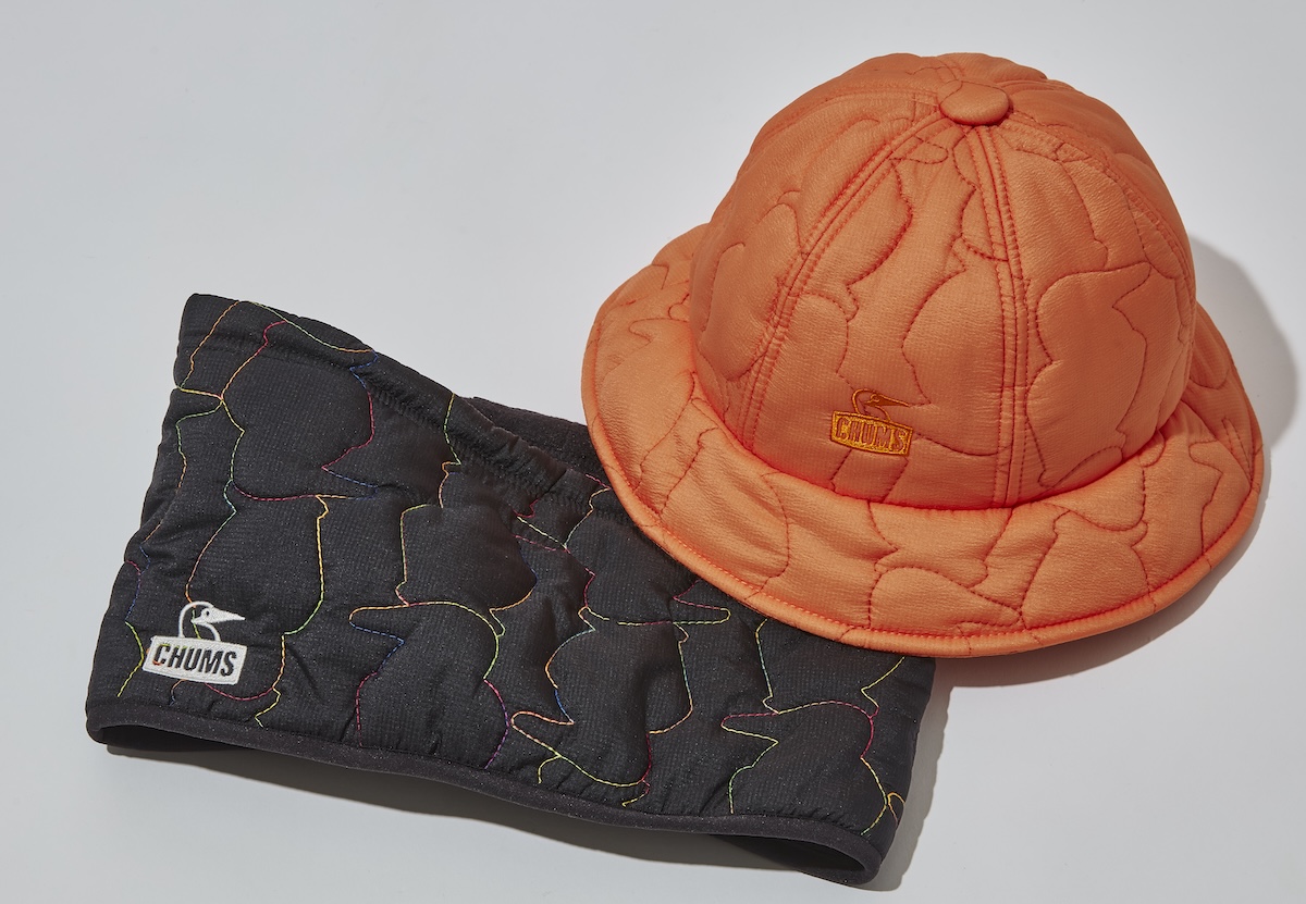 これからの時期に欠かせない、冬小物もラインナップ。キルティングで仕上げられたハットは、ありそうでなかったアイテム。ネックウォーマーは、アクセント的に取り入れつつ、首周りの保温性を高めてくれる実用的な防寒ギア。