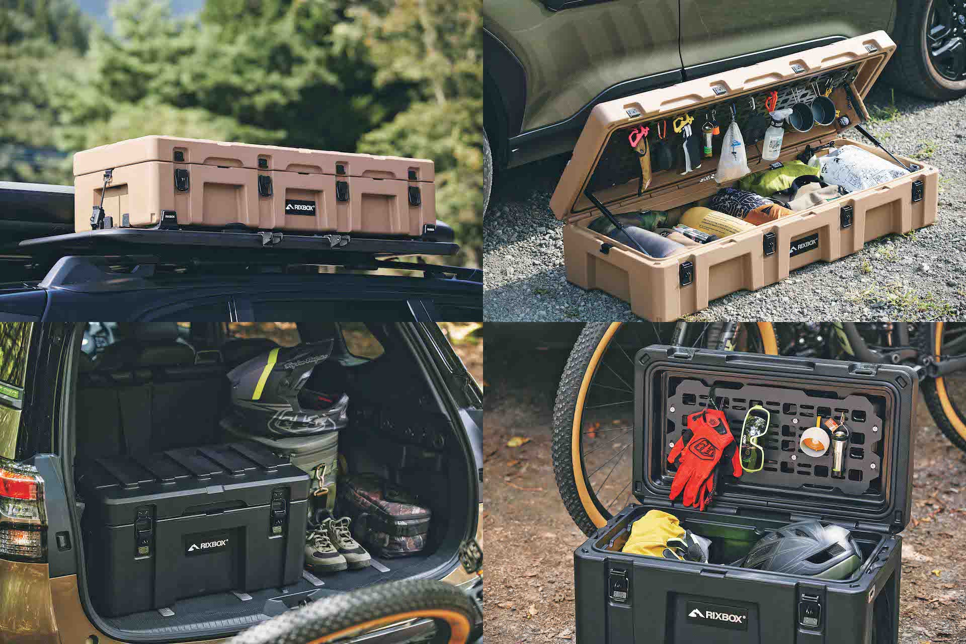 「リックスボックス」のコンセプトは、安全かつ快適に旅を楽しむこと。耐久性、密閉性に優れ、ルーフラックに装着できるクイックマウントや、フタ裏に取り付け可能なモールパネルなど、ギア好きの琴線を刺激するポイントもしっかり押さえている。