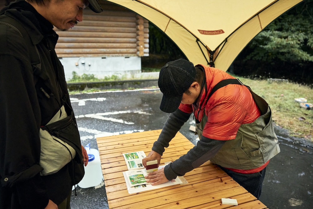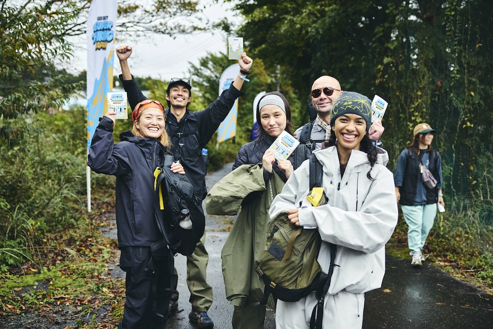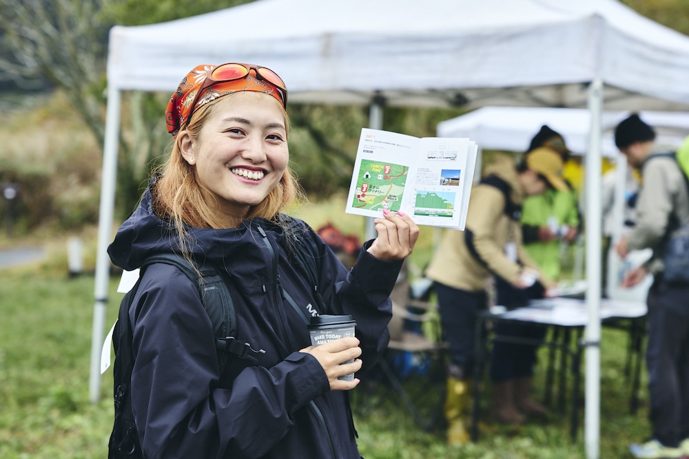 樹海ルートを抜けると、本栖湖の湖畔沿いにある「第1チェックポイント」に到着。ここでは協賛ブランドによるイベントが用意されるなか、出発前にもらったパスポート(もしくはアプリ)に、通過した証のスタンプを押してもらえる。