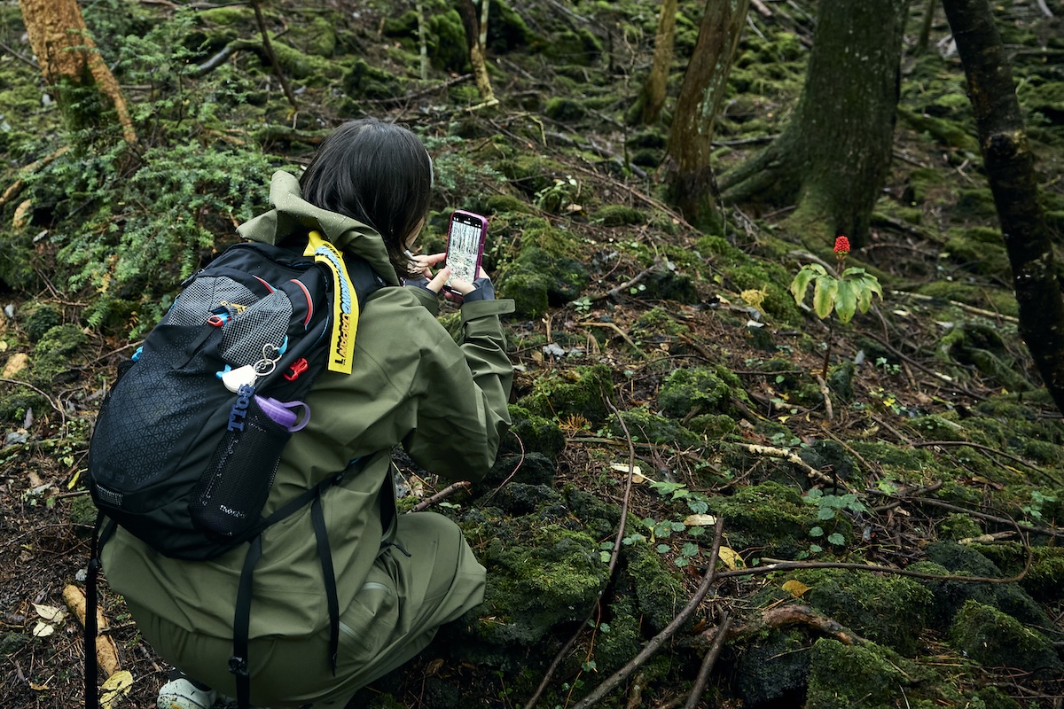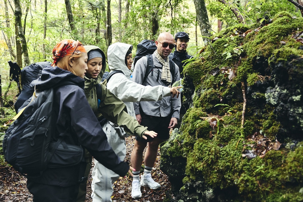 富士登山のツアーガイドとしても活躍し、このルートも何度か歩いたことがあるというキャンさんが、樹海の成り立ちや見どころを話してくれたり、それぞれが気になる景色を撮影するなどして、ゆっくりと歩いていく。