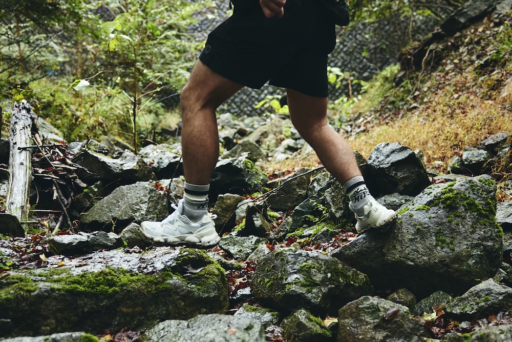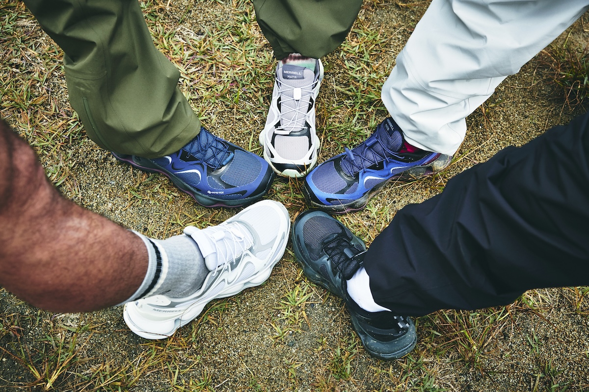 この日、5人が着用するのは、メレルの高機能ハイキングシューズ「マティス」シリーズの最新モデル。アッパーは軽量で通気性に優れたメッシュをベースにTPUで補強。ゴアテックスも搭載しているため、雨でも快適に歩くことができる。