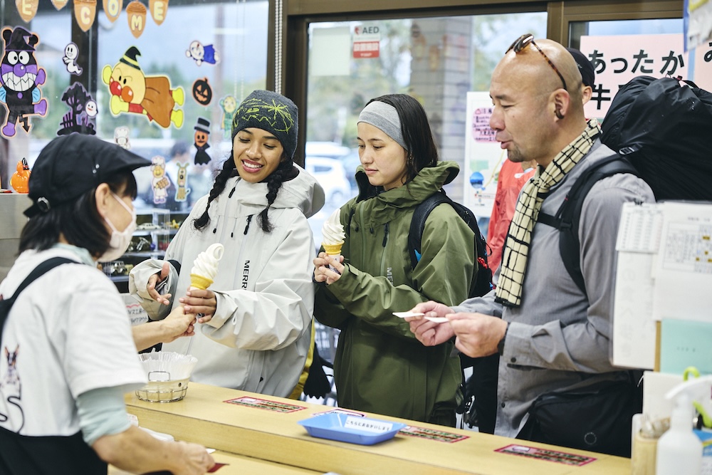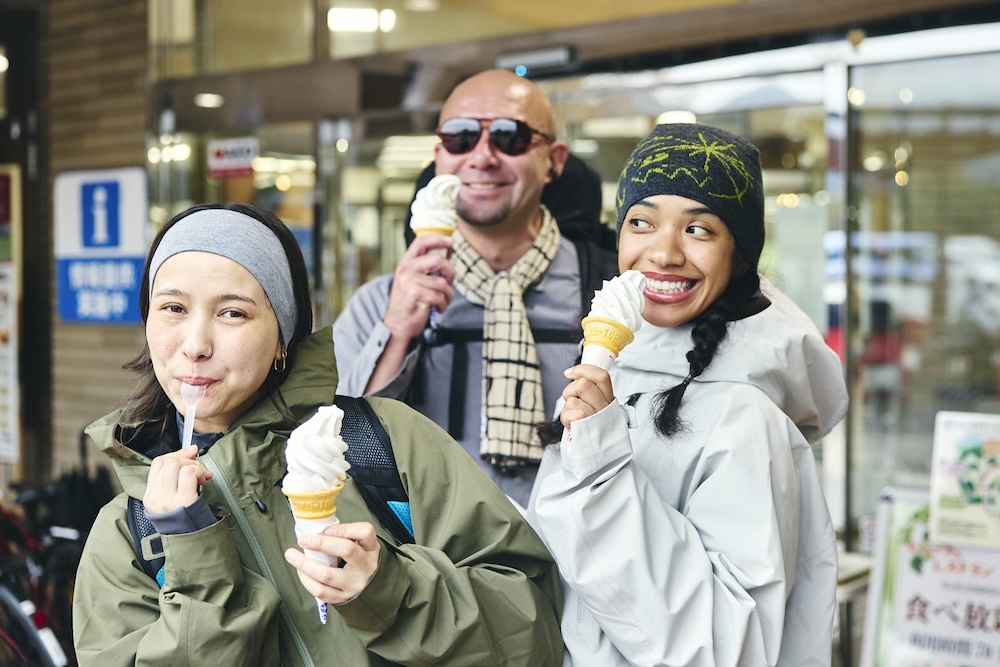 高原のご当地グルメといえばソフトクリーム。ちょうどオヤツタイムということで、みんなで濃厚なソフトクリームを堪能。