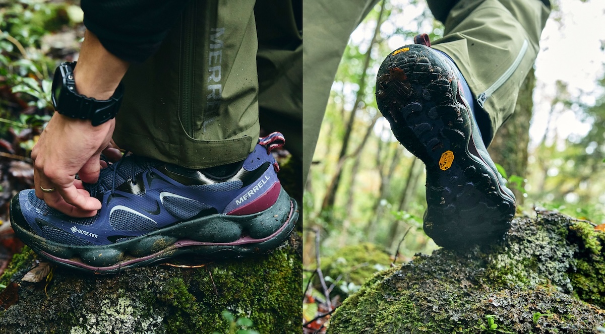 この日、5人が着用するのは、メレルの高機能ハイキングシューズ「マティス」シリーズの最新モデル。アッパーは軽量で通気性に優れたメッシュをベースにTPUで補強。ゴアテックスも搭載しているため、雨でも快適に歩くことができる。