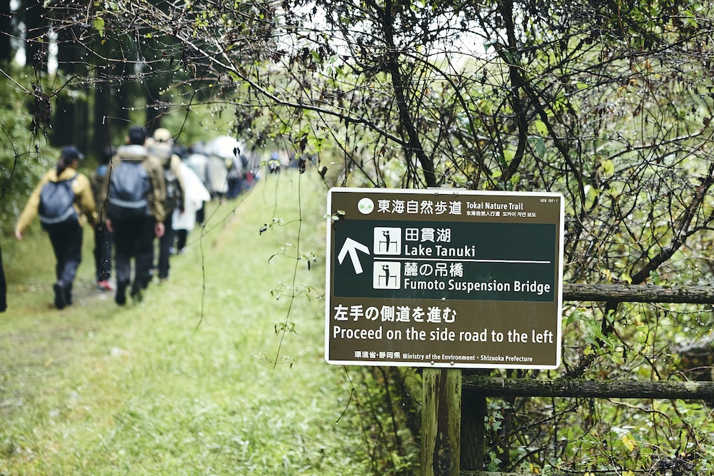 この日は、ふもとっぱらをスタート地点にして、約5km先にある「陣場の滝」を目指す。そこがスーパーハイキングの最終チェックポイントであり、ゴール地点になる。そしてここからのルートも、先日に続き「東海道自然歩道」の一部。