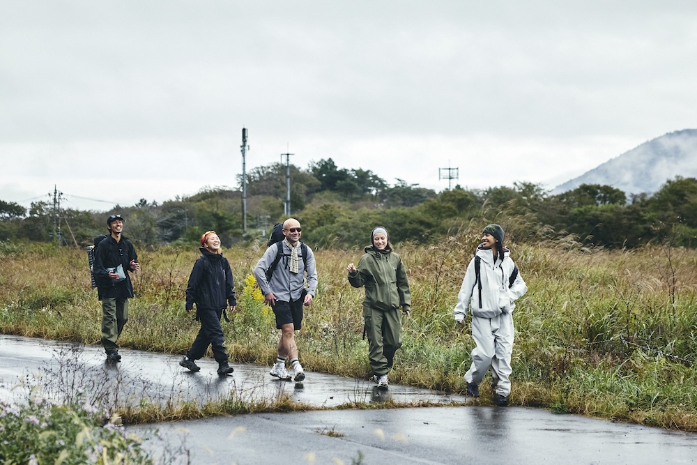 今回のハイクで5人が色違いで履いているシューズで、完全防水なので雨や朝露が染み込んで濡れる心配がない。まさに頼もしい相棒といったところ。