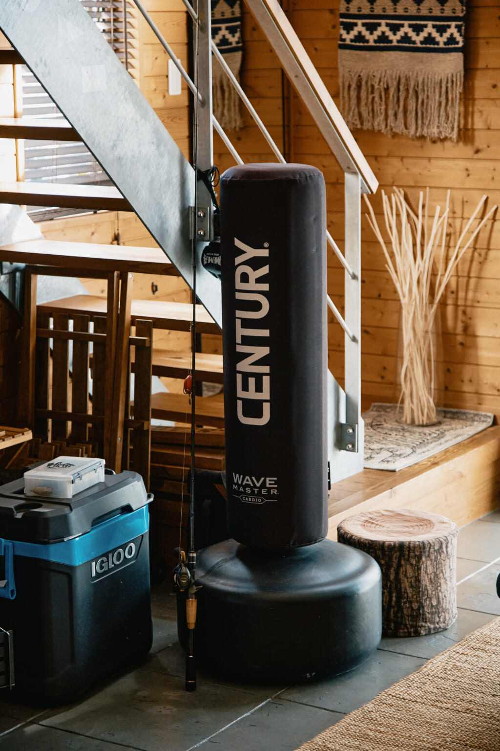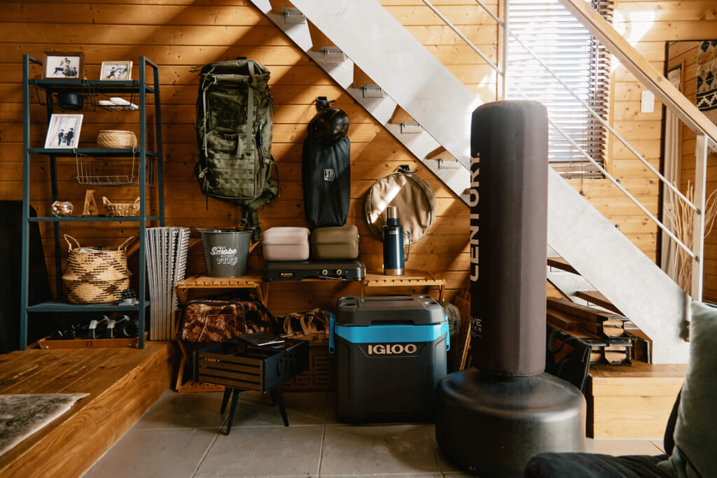 そして、真也さんが好きな色である黒の“ブラック”アイテムが空間を引き締めています。オプションで設置したウンテイは、懸垂などの運動にしっかり活用中! 体を動かそうと購入したサンドバックも、もちろんブラック。「この家は学校が近所。土間もあってサンドバッグやウンテイもあり、必然的に子どもが集まる場所になっていました(笑)」。