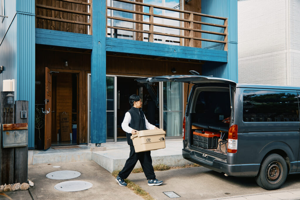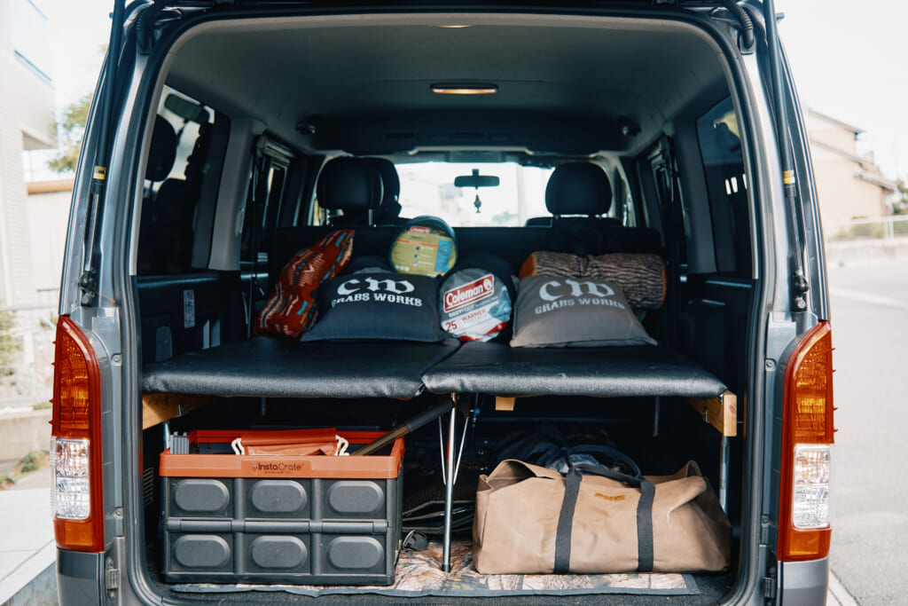 キャンプがもたらした変化は、クルマにも反映。「家族5人分のギアとなると量が多くて。すべてラクに積み込めるので、トヨタのハイエースを選びました。DIYでベッドキットを作り、車中泊もできます」。かおりさんが普段の通勤で使うのはダイハツのハイゼット・デッキバンで、いずれもアウトドア感強めなチョイス。「ワタシがこの軽に乗っていると、よく近所のおじいちゃんから車種を聞かれます(笑)」。
