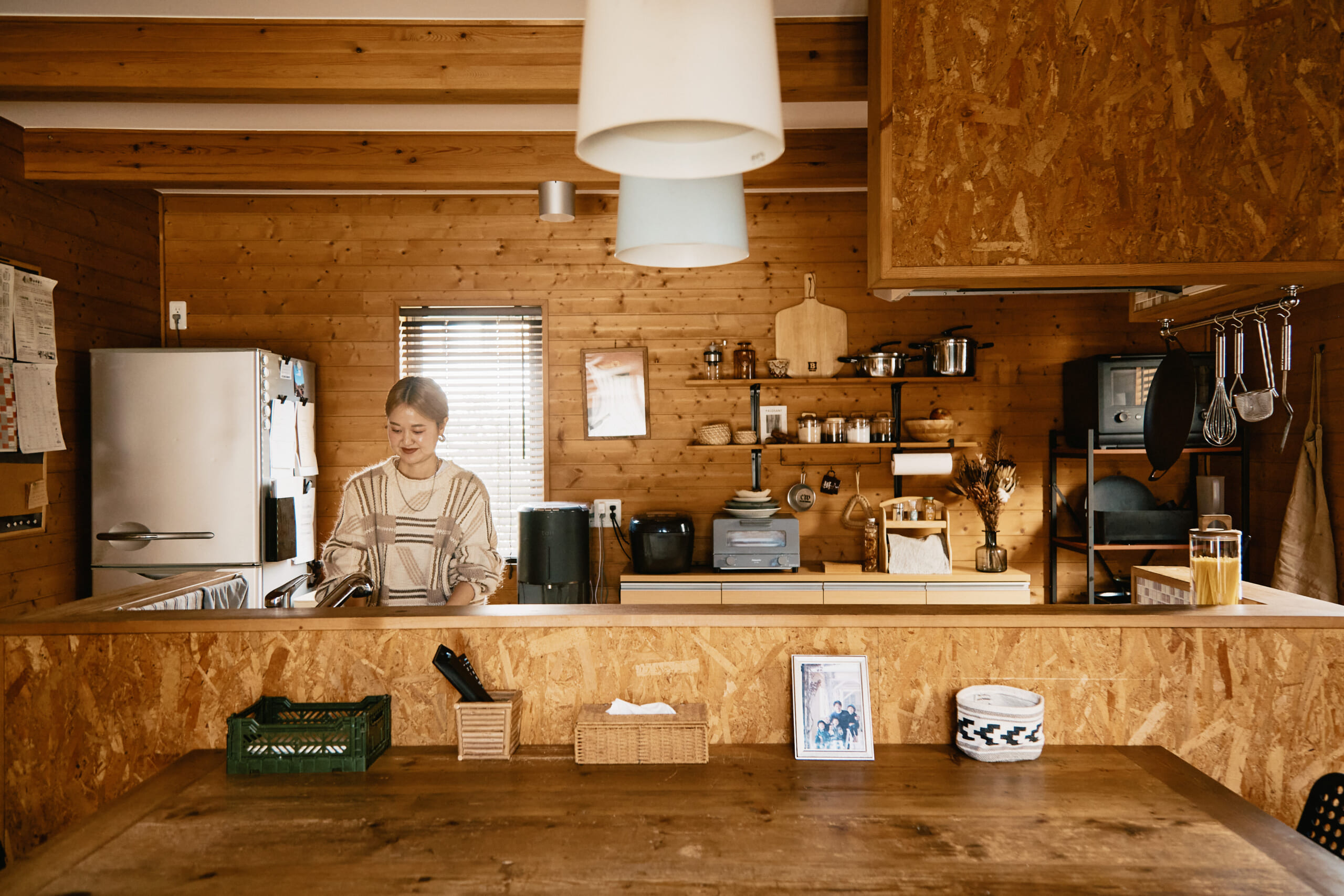 家を購入する前は社宅で暮らしていた伊藤さん家族。3人目のお子さんが生まれるタイミングで、自宅の購入を検討していたとか。「雑誌の広告を見てBESSを知り、世界観にひかれて購入を決意しました」という真也さん。実際に展示場を訪れ、かおりさんも街とログハウスのエッセンスがミックスされたワンダーデバイスを気に入ったと話します。