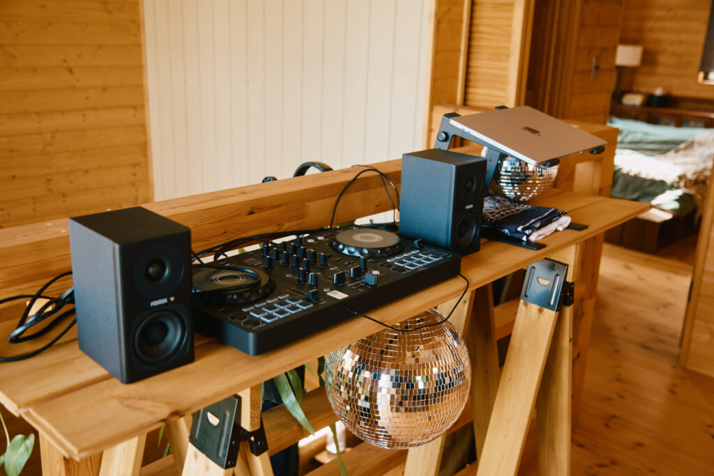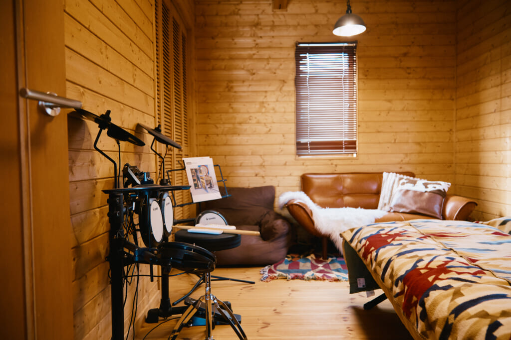 さらには、先日行った結婚式で、喜大さんがDJデビュー! 一方で美咲さんは、ドラムに挑戦しようとセットを購入。広い家だからこそ機材をひと揃えしても置き場に困らない。