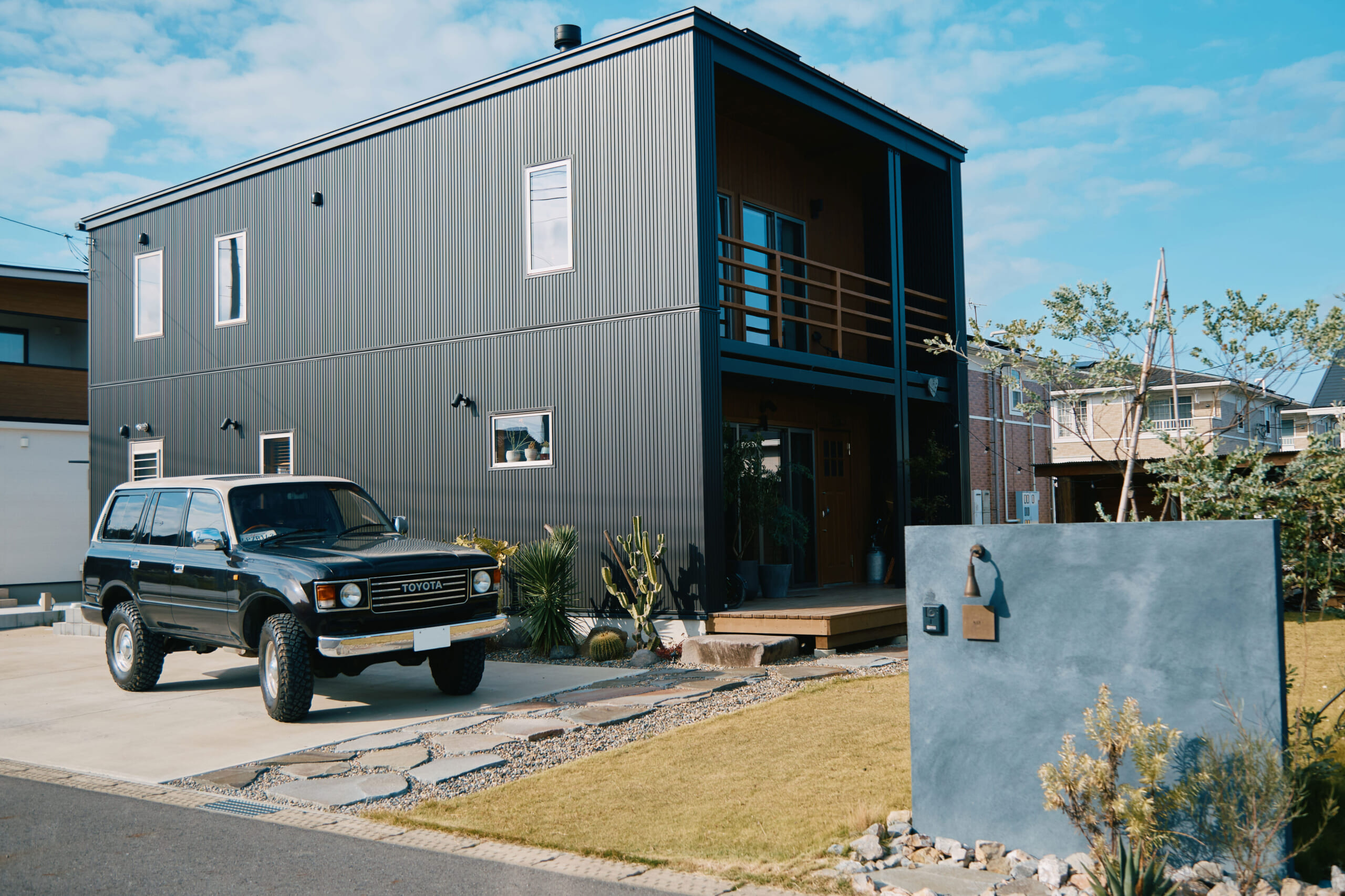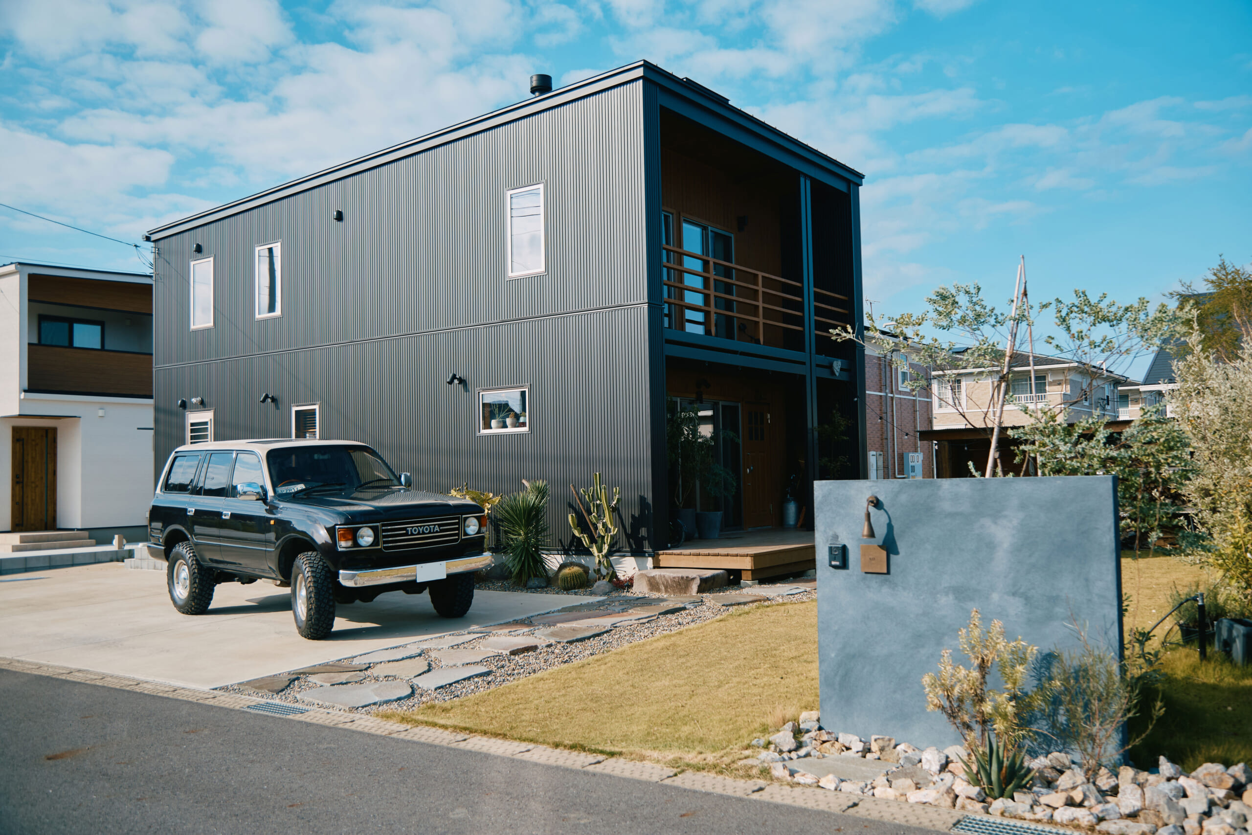 BESSが提案する「家は道具」という考えから、暮らしの「装置」として開発された四角い箱が特徴的な定番人気モデル。全面無垢材の室内たけでなく外遊び派に嬉しい土間など、好みに合わせた空間にアレンジすることも可能。ウッドとガルバリウムの外壁は、アウトドアな雰囲気と都会的な印象のとちらも持ち合わせたデザイン。色も選択でき、今回訪れた日比邸では、シャープな印象のブラックをチョイス。