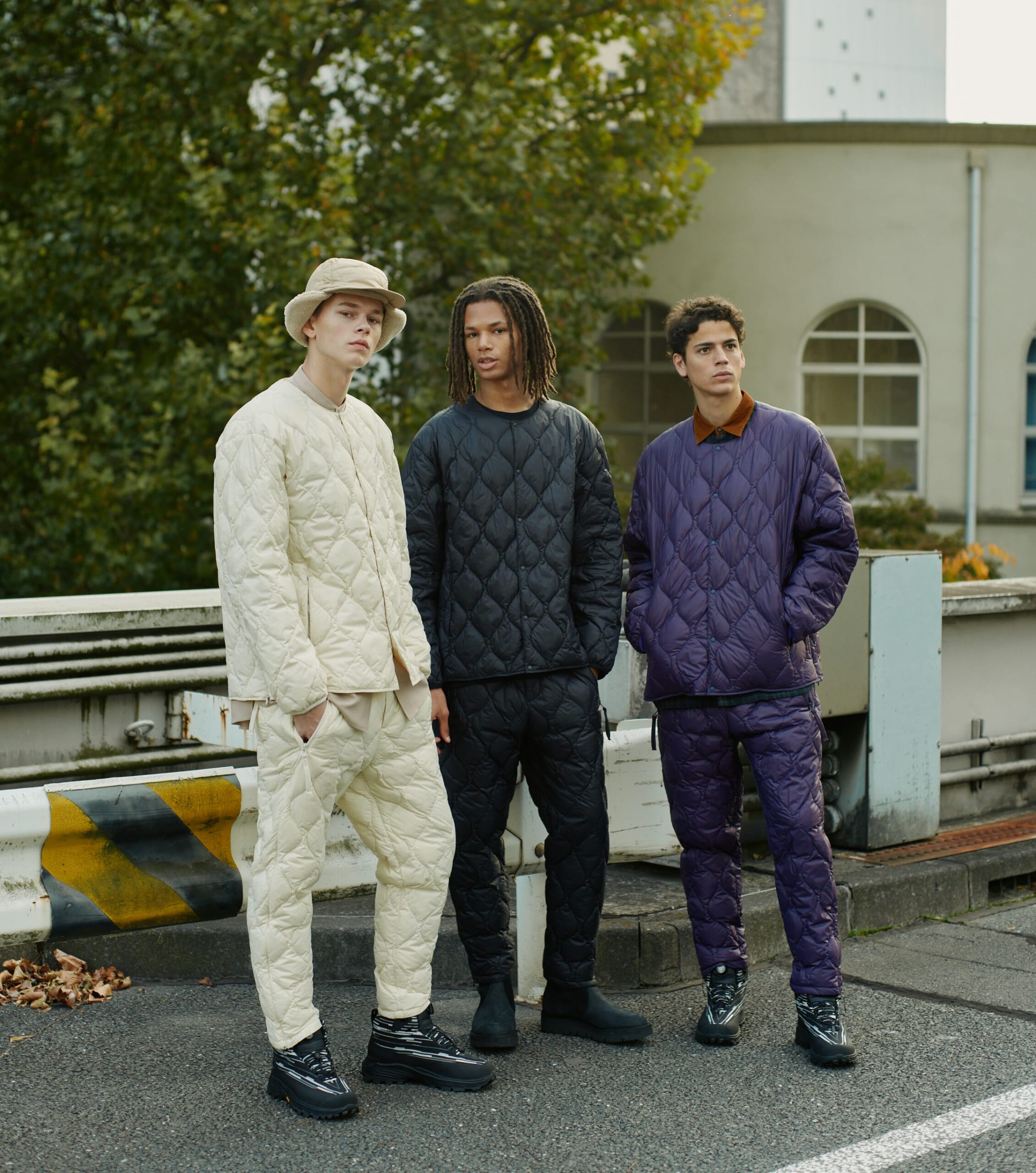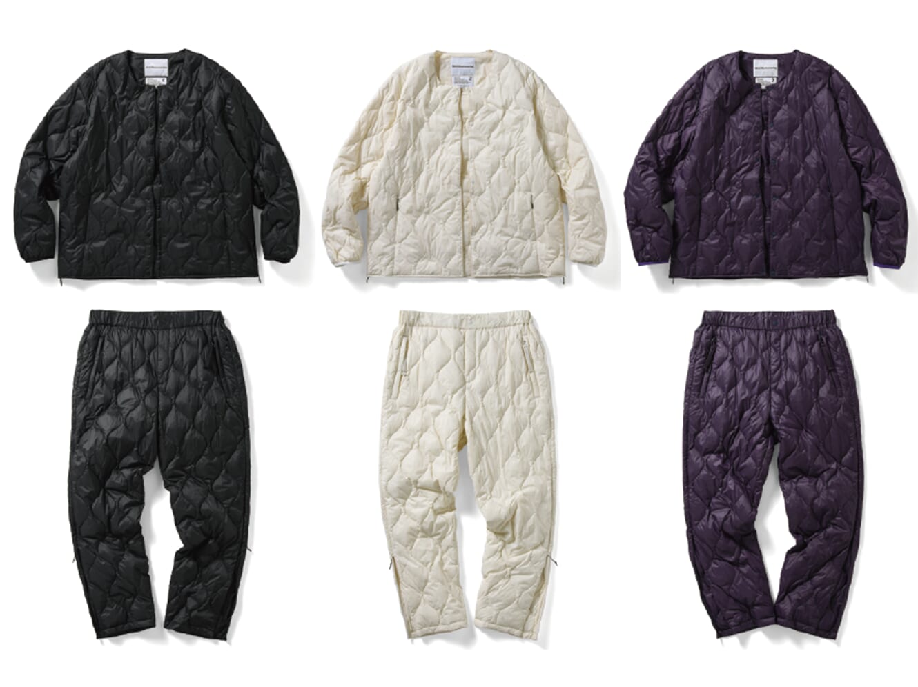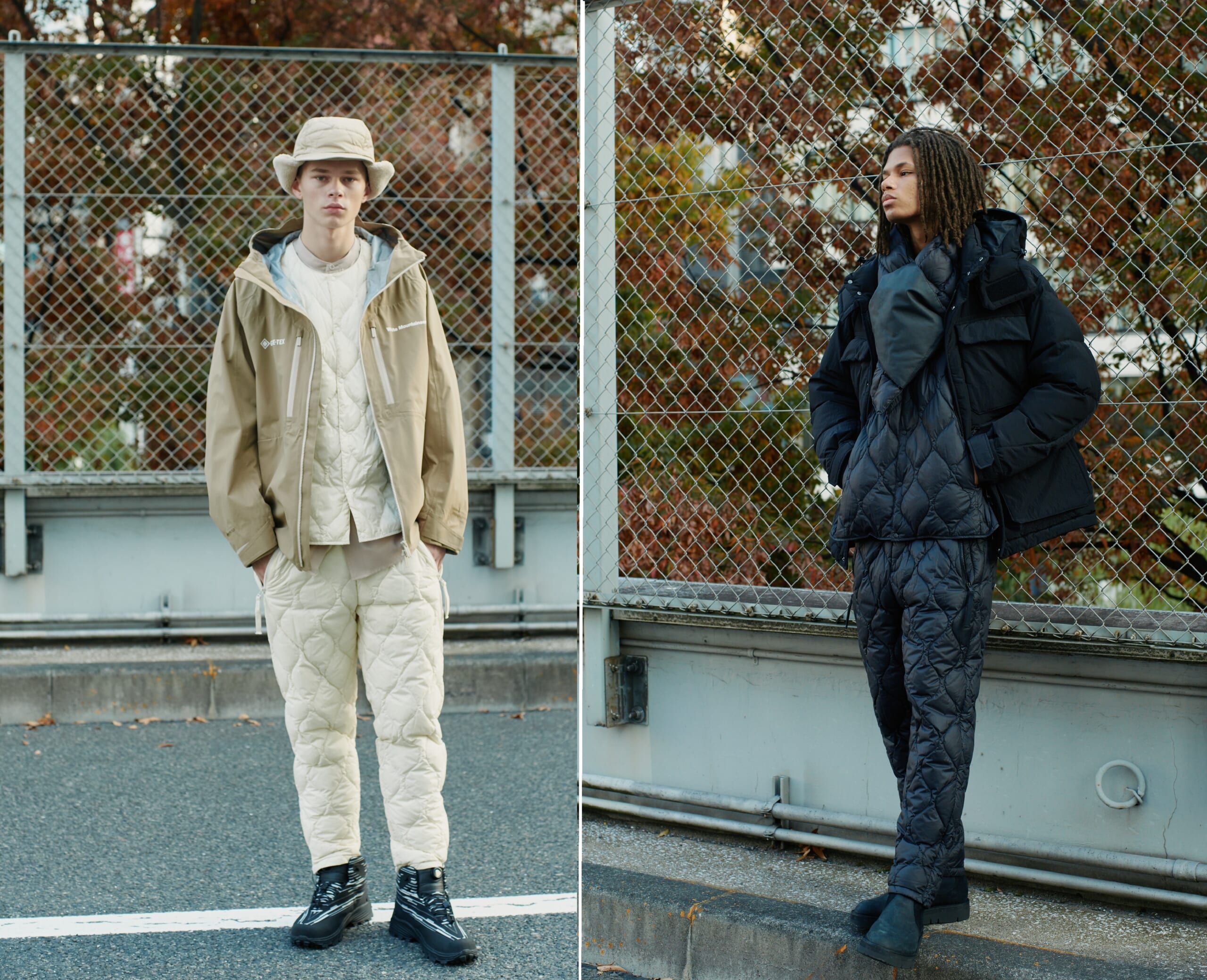 「White Mountaineering(ホワイトマウンテニアリング)」では、ライトダウンジャケットとライトダウンパンツの2アイテムをドロップ! TAIONが築いてきた“シンプルでミニマムなインナーダウン”の概念をストレートに取り入れたセットアップとなっている。