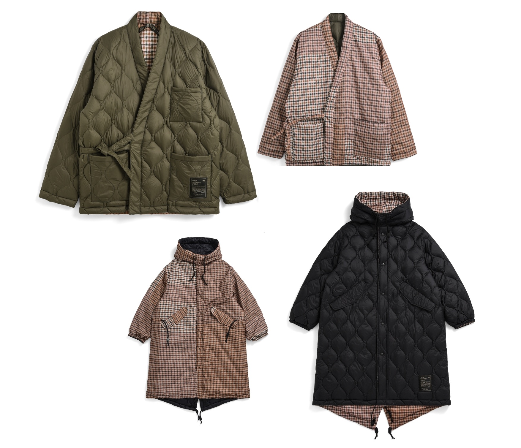TAION×Universal Works/リバーシブル袢纏ダウンジャケット ¥25960、リバーシブル ダウンモッズコート ¥39600