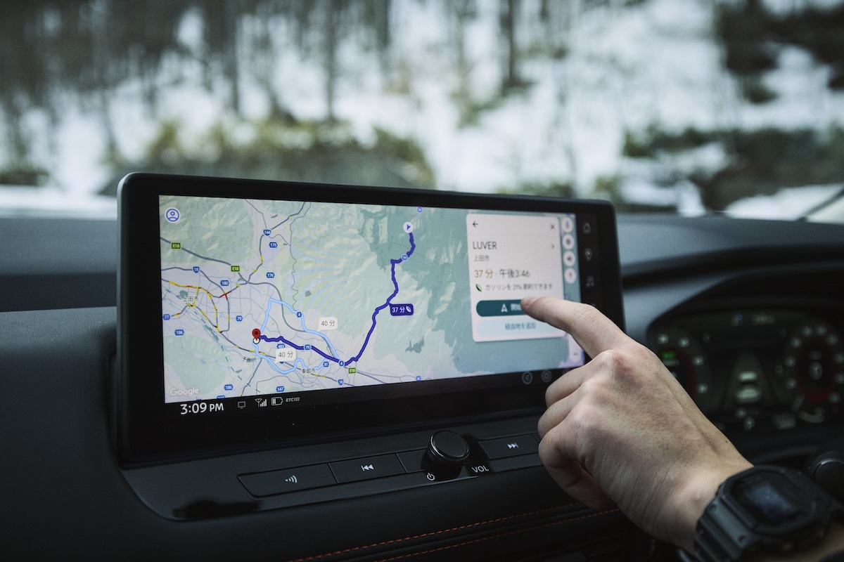 次の目的地へ行く前に、Google搭載ナビで住所を検索。街歩きでいつもお世話になっているアプリだから、操作を迷うことがないし、画面は大きく非常に見やすい。初めての道も、入り組んだ道も、これがあれば安心・安全!