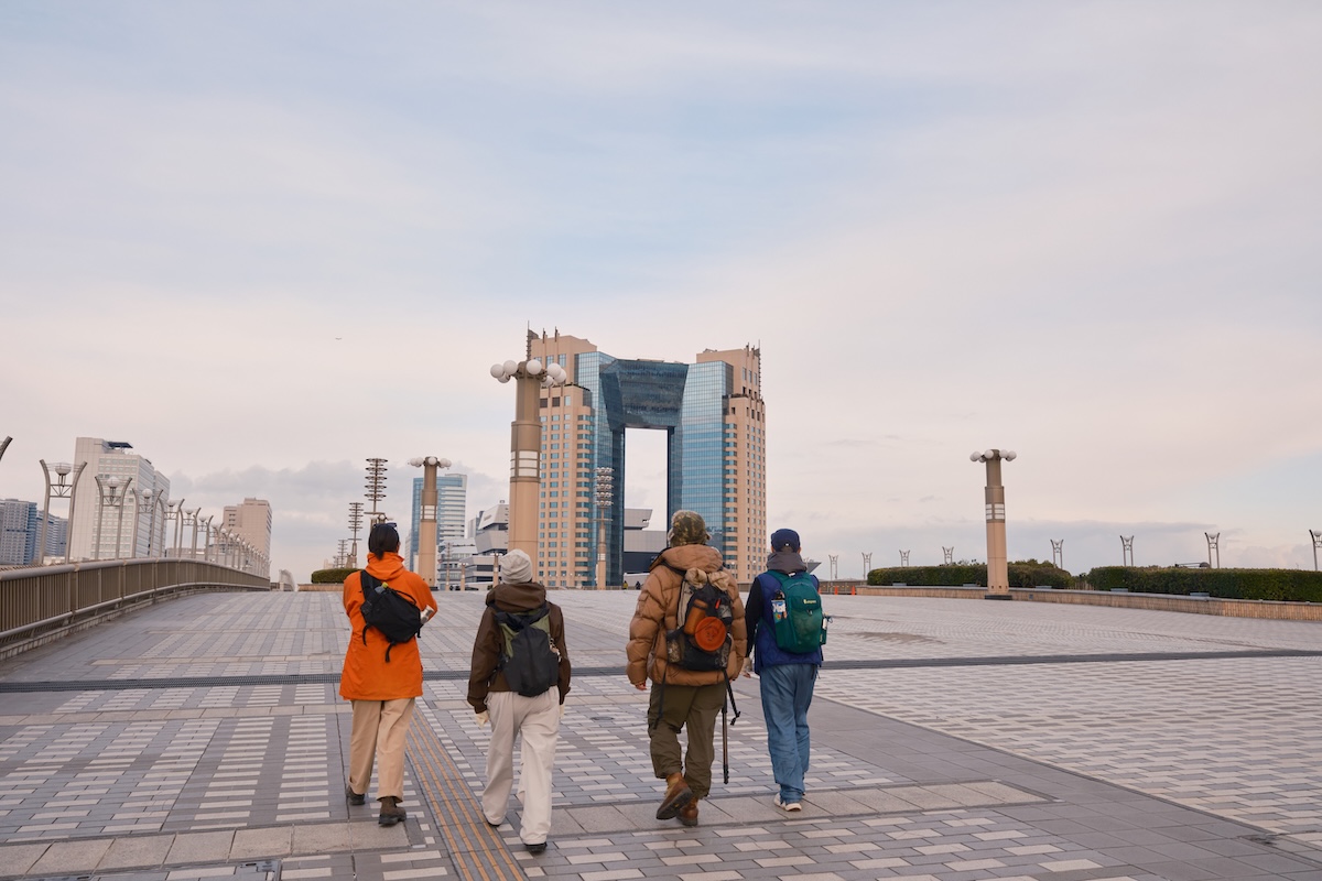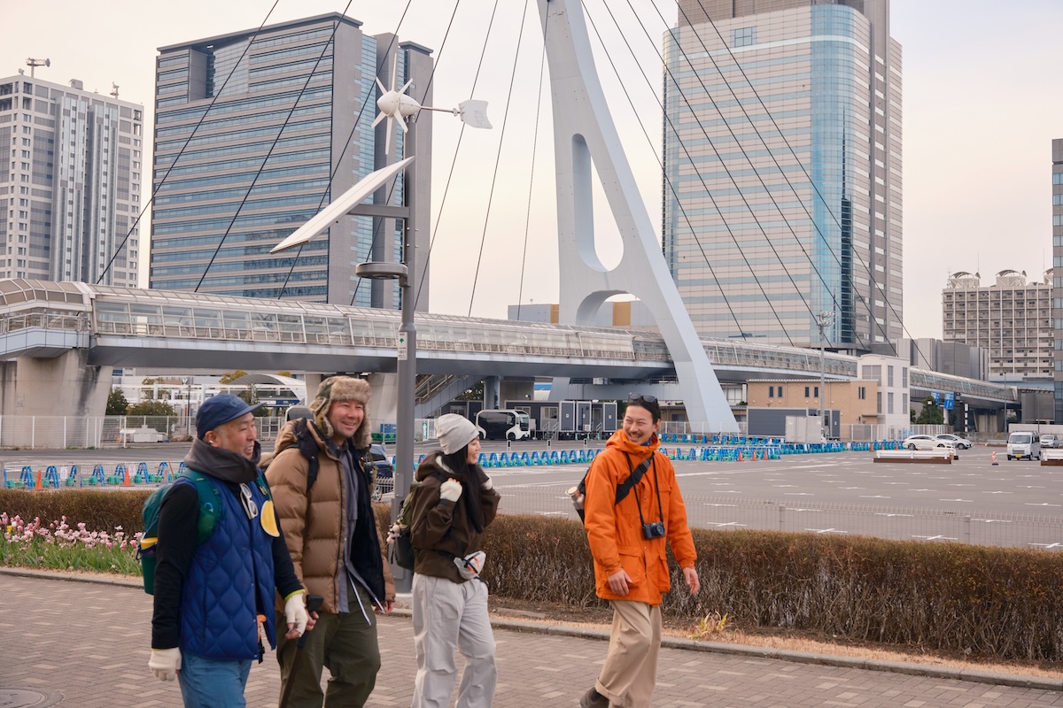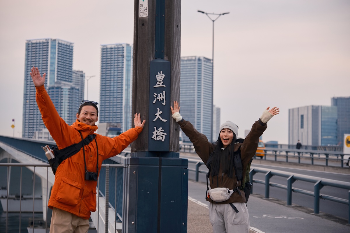 お台場のビーチを後にした4人は、青海や有明を経由して晴海に向かうが、この辺りは人工的な街並みが続く。特に「テレポートブリッジ」周辺は、90年代に作られた革新的な建造物が多く、いまも変わらず近未来的な雰囲気は健在。