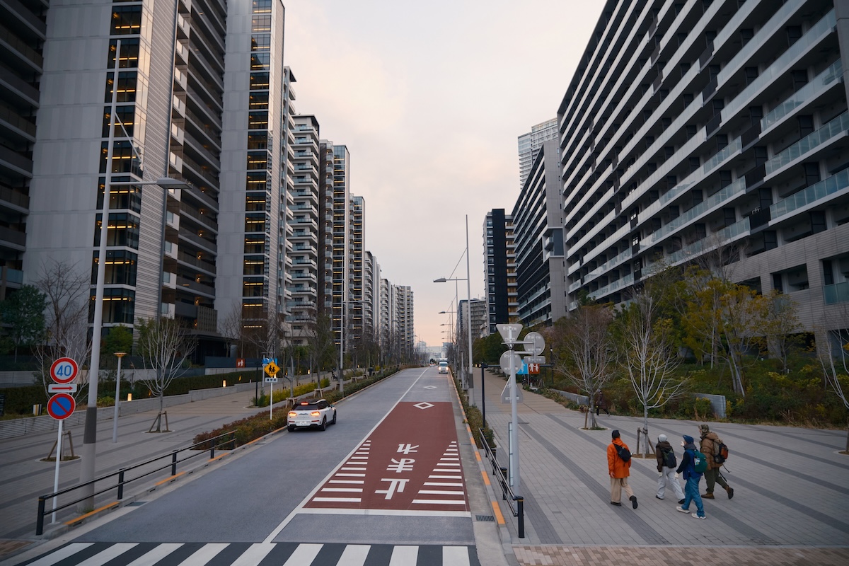 橋を渡りきると、そこは2020年東京オリンピックの選手村跡地に作られた臨海タウン「晴海フラッグ」。分譲マンションとしては国内最大の住戸数となる、約1万2000人が暮らす街となっている。