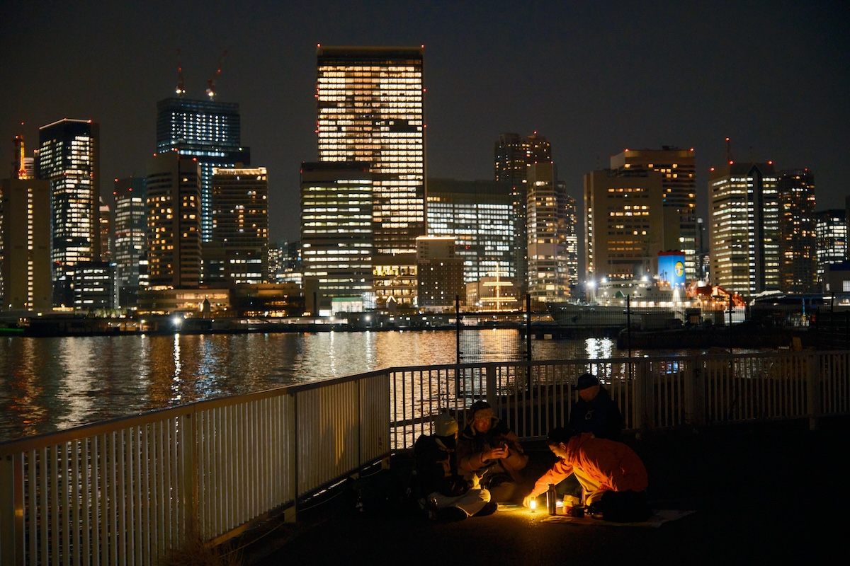赤提灯に吸い寄せられそうになるキャンさんを辻井さんがいなしつつ、目的地の晴海埠頭を目指す。