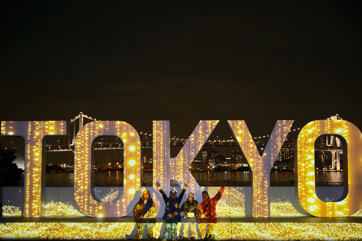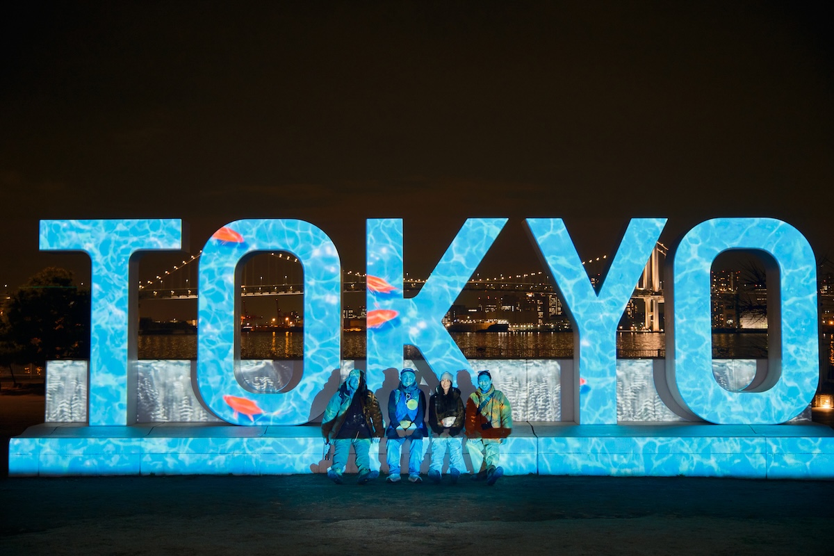 こちらは「晴海ふ頭公園」に設置されている「TOKYO」モニュメント。日没から23時までライトアップされているが、現在は期間限定(令和7年3月31日まで)で1日7回、日本をイメージした16分ほどの映像を投影する演出が行われている。