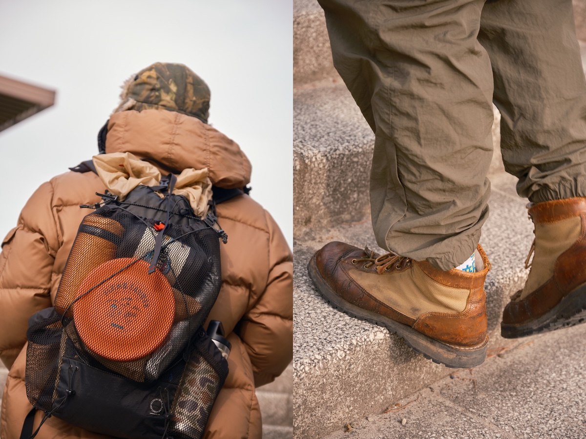 キャンさんのバッグはハイク装備が詰まった「山と道のミニ2」。そして足元は、20年以上愛用しているという「ダナーのダナーライト」。もはやヴィンテージともいえる1足。