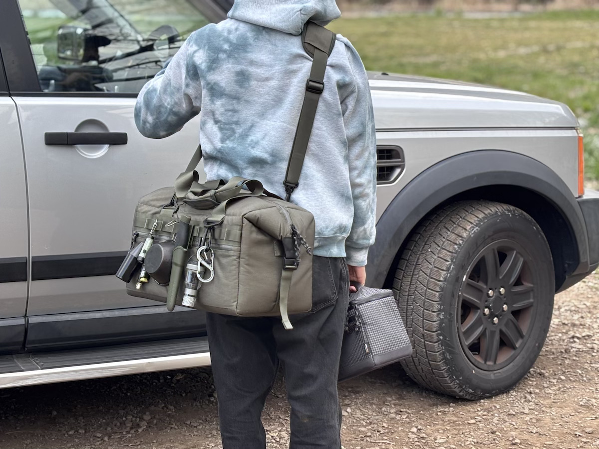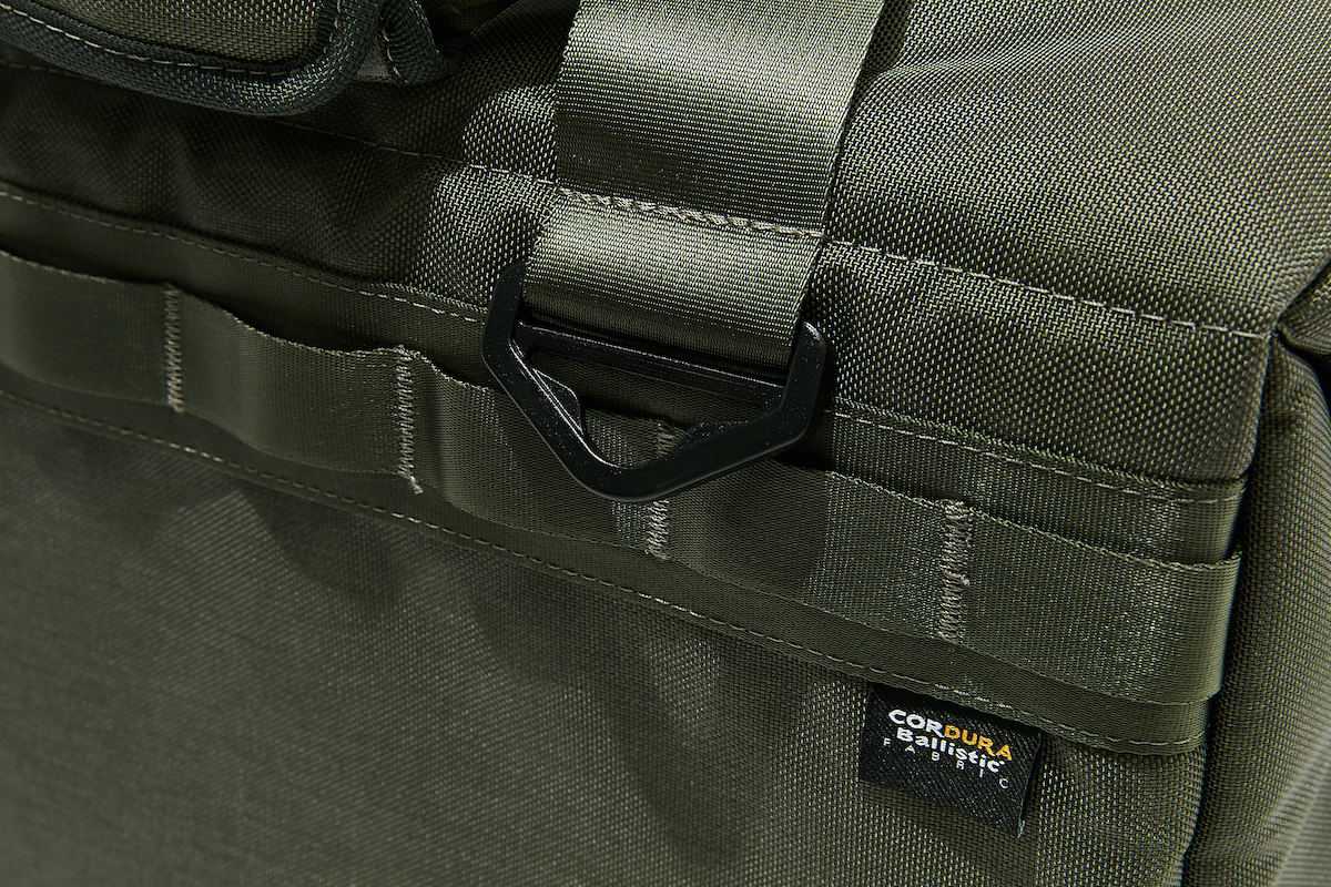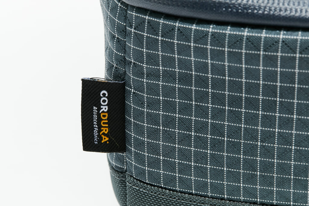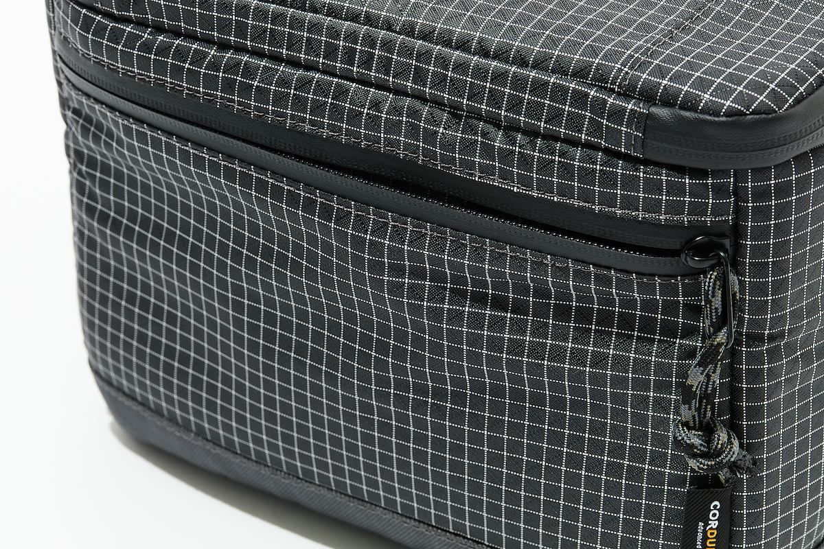 210D×200Dのコーデュラバリスティックナイロンのリップストップを表地に採用し、底面はよりタフな840Dにウレタン防水加工が施されているので、山行や釣りなどのシーンでラフに扱える。