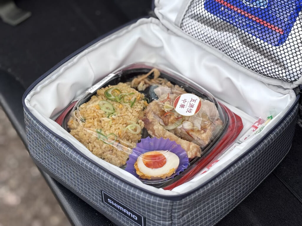 正方形のコンビニ弁当がすっぽり。まだ高さに余裕があるので、冷やし中華やそばなどのお椀型も入りそう。