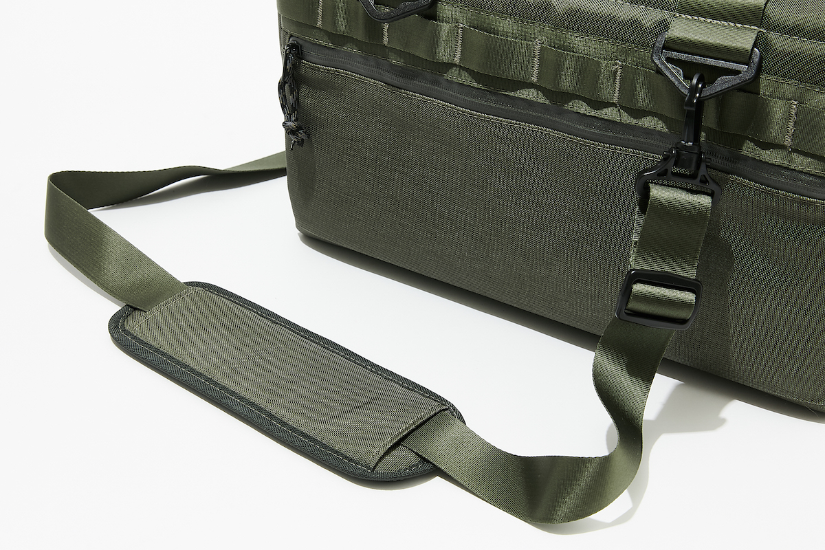 キャンプギアのコンテナバッグかのようなミリタリー風味のデザイン。モールやフロントポケットを採用したスクエアタイプのクーラーバッグとなっており、S(16L)・M(18L)・L(26L)の3サイズ展開、カーキ・チャコール・アンヴィルグレーの3色がそれぞれラインナップする。