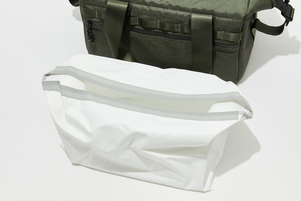 驚くべきは、まるっと取り外せるTPU製の防水インナー。ソフトクーラーとしては新発想では? これなら食材の汚れがついても洗いやすいし、ベルクロ式で着脱も案外カンタンだった。