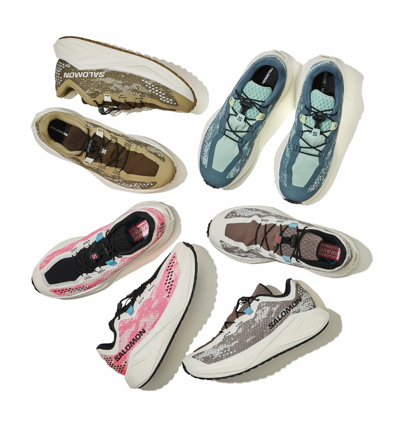 オンロードもオフロードも快適に走れる高機能シューズとして、「サロモン」の定番となった「グラベル」シリーズ。今季は春らしいビビッドなカラーリングが目白押しなので、ランコーデにさりげなく季節感をプラスできる!!