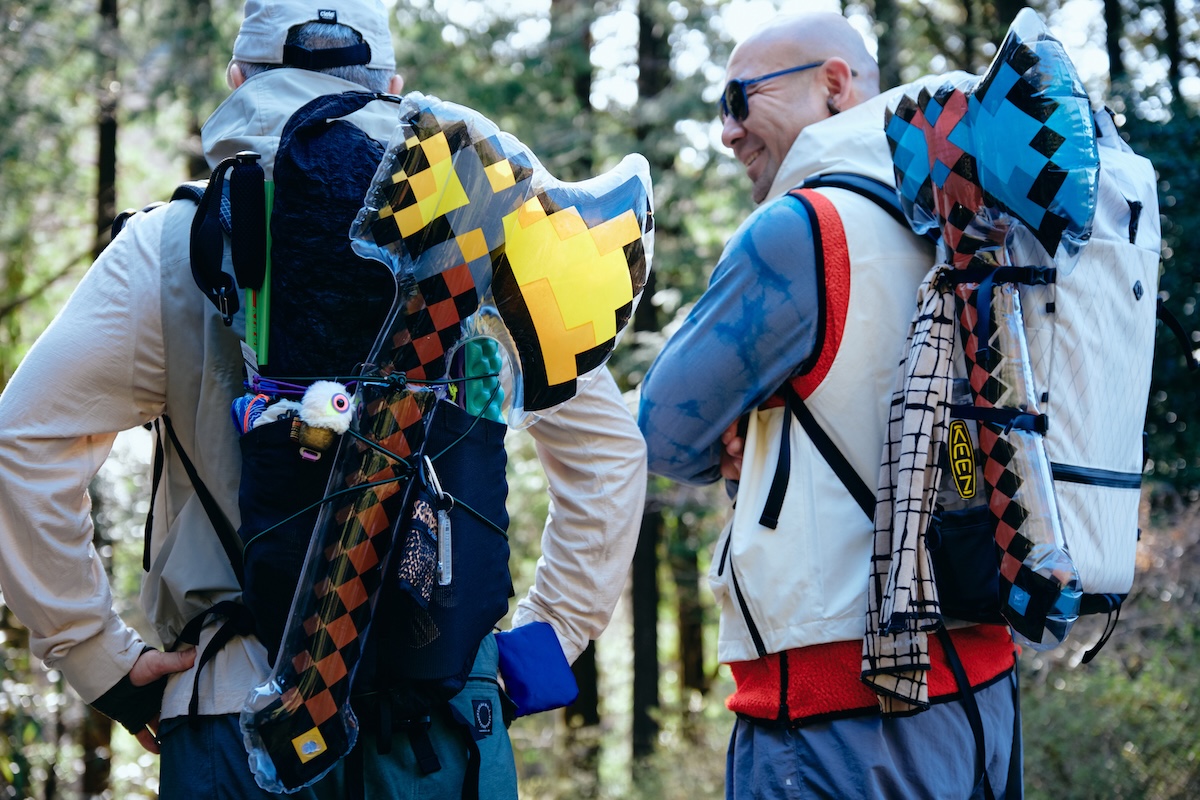 金時山ハイクを盛り上げるために、キャンさんと辻井さんは、ビニール製のまさかりを用意。バックパックのアクセントとして抜群の効果を発揮し、すれ違うハイカーからもウケていた。