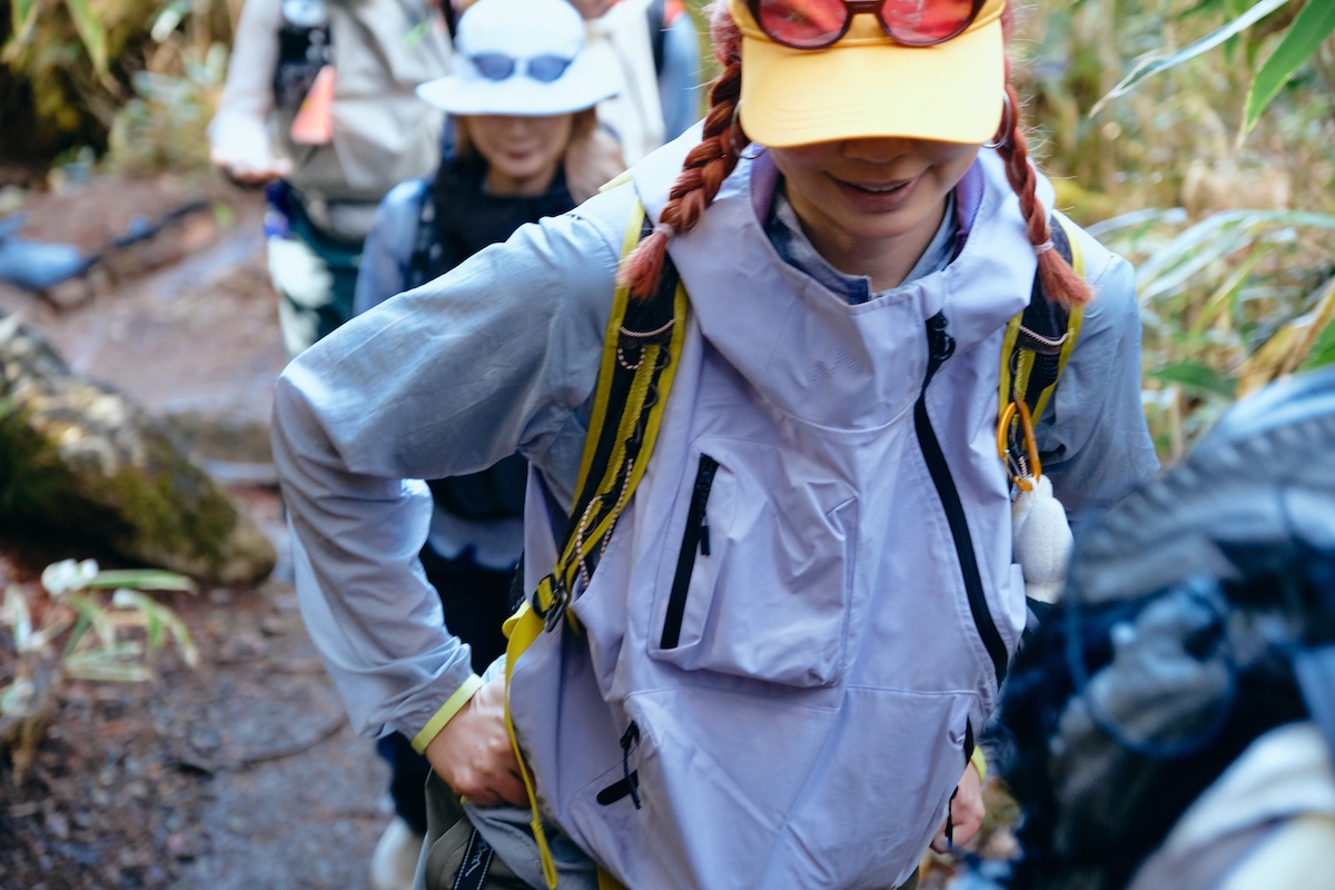 そんな人気の山をレギュラーコンビと歩くのは、アクティブ系インフルエンサーの女性3名。しかもそのうちの2人は、中国から来日しての参加となる。そして今回は、全員で中国発のアウトドアブランド「ALL READAY(オールレディ)」のベストを着用!