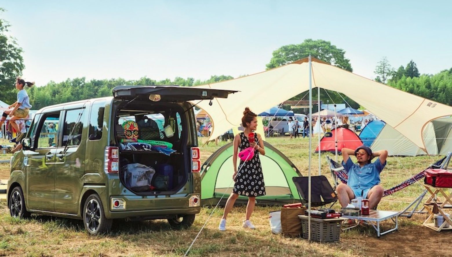 フォルクスワーゲンのミニバンで、春のファミリーキャンプにお出かけ。