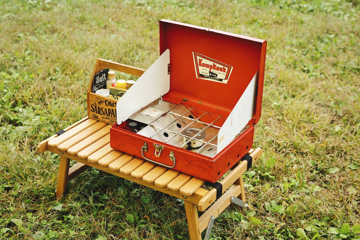 赤が映えるキャンプクックのバーナーがチョウリドウグ。こう見えてシングルバーナーで、サイズの大きい鍋やダッチオーブンも楽々置ける。