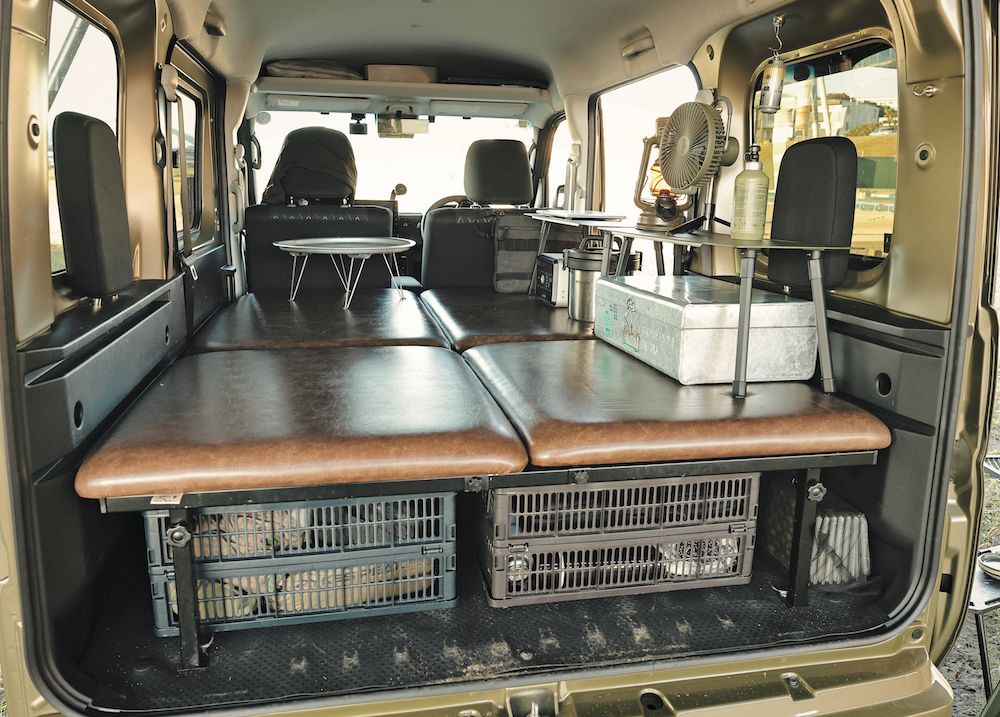 リフトアップしてキャンプ仕様に仕上げた軽バンは、身軽なソロ旅にもフィット。(’23 DAIHATSU ATRAI) GO OUT編集部作成日2024.12.25更新日2024.12.25 ラゲッジルームにはベッドキットをセットして簡易リビングに。「雨の日や寒いときは車内で過ごすし、ここで寝ることもあります」。 記事に戻る GO OUT編集部作成日2024.12.25更新日2024.12.25