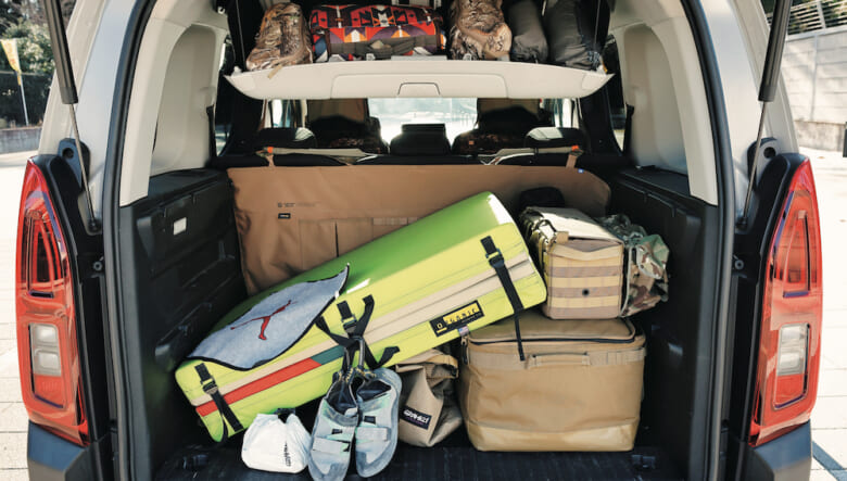 クライミングやキャンプ、釣りなどアクティブな趣味が多い山本さんの愛車は、収納力に優れたベルランゴ。「クライミングマットやテントなどの大型ギアも積載しやすいし、小さなストレージが要所にあるから、細かい釣り道具とかもキレイに整頓できるのがいいですね。移動式ガレージみたいなクルマです」。