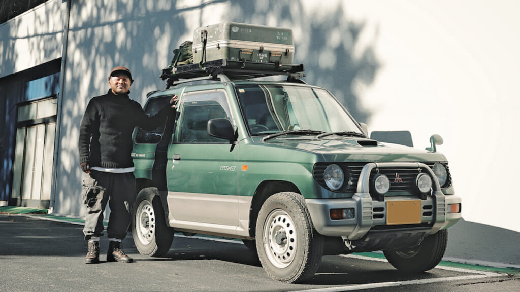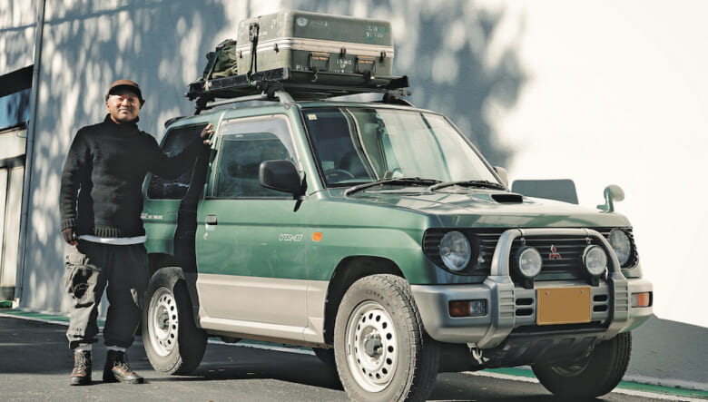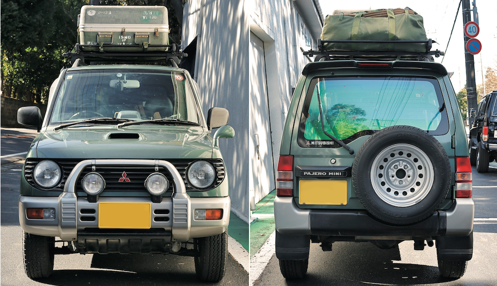 ブッシュクラフトやミリタリーキャンプが趣味の加瀬さんは、山奥までアクセスできる1台として初代パジェロミニを入手。「このサイズならジムニーが定番かもしれないけど、まわりで乗っているヒトが増えてきたので、ジブンはこっちに。お気に入りのポイントは、初代モデルならではの丸目ライトです」。