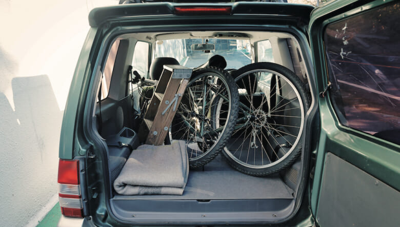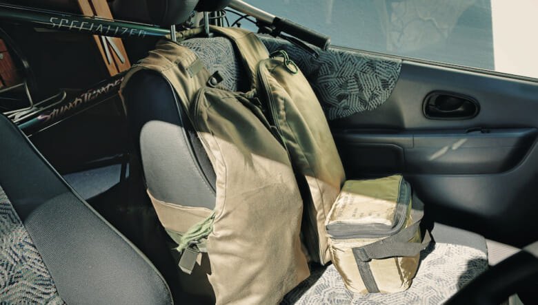 軽ながら四駆でターボ仕様なので、遠方の山にも気軽に足を伸ばせるとか。「普段は地元の里山を走ることが多いけど、イベント出展などで遠征することもあるからターボが重宝します。でも5ドアのジムニーも気になるんですよね……」。