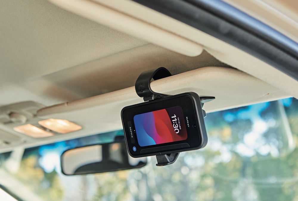 バイザーにセットできるスマホホルダーも愛用。