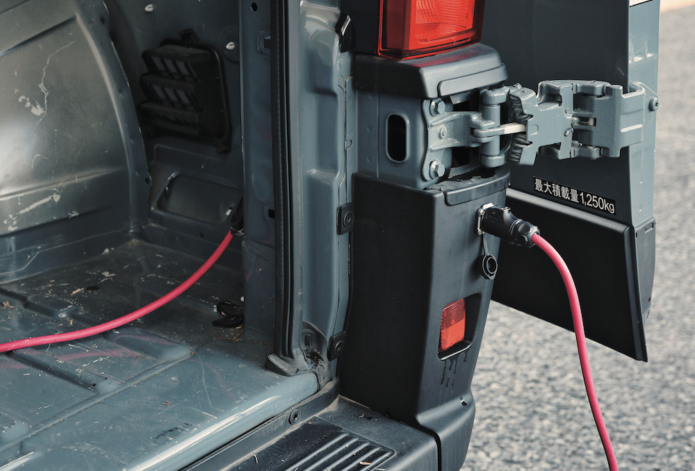 ここからケーブルを通して車内のポータブル電源に充電可能。「アイドリングしながら充電できるシステムも搭載しています」。