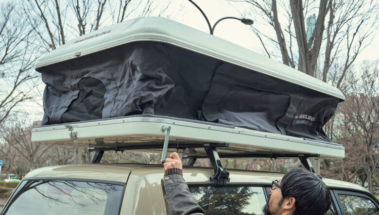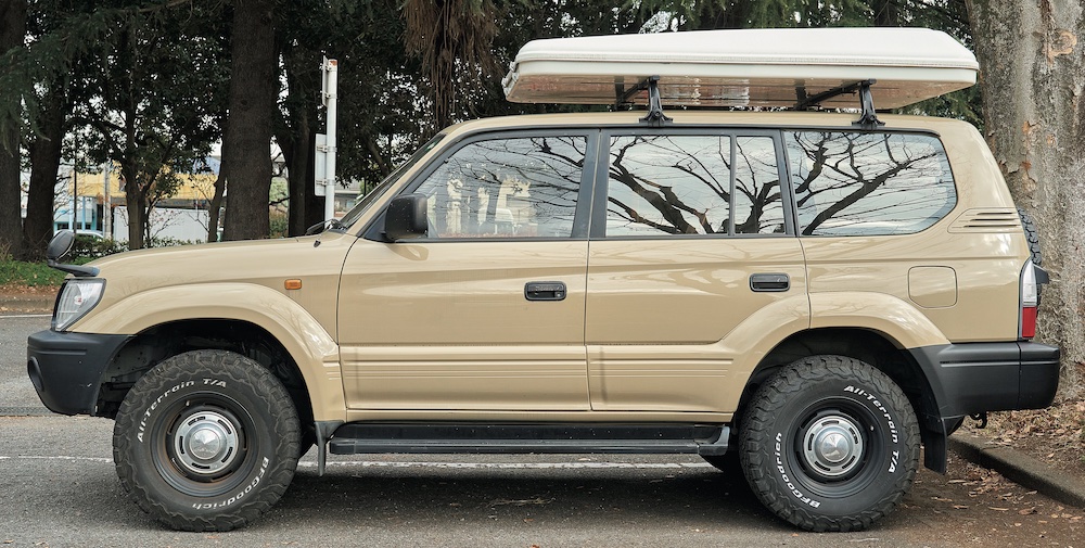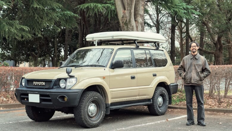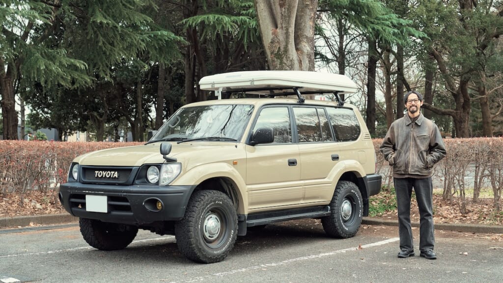 初の愛車というランクルプラドはルーフトップテントを装着。「ルーフテントを購入したきっかけは友人が使っていて、便利だなと思って探しはじめました」。出会ったのはハンドルを回して開閉するモデル。その気軽さは、これまでの遊び方を大きく変えることになったそう。